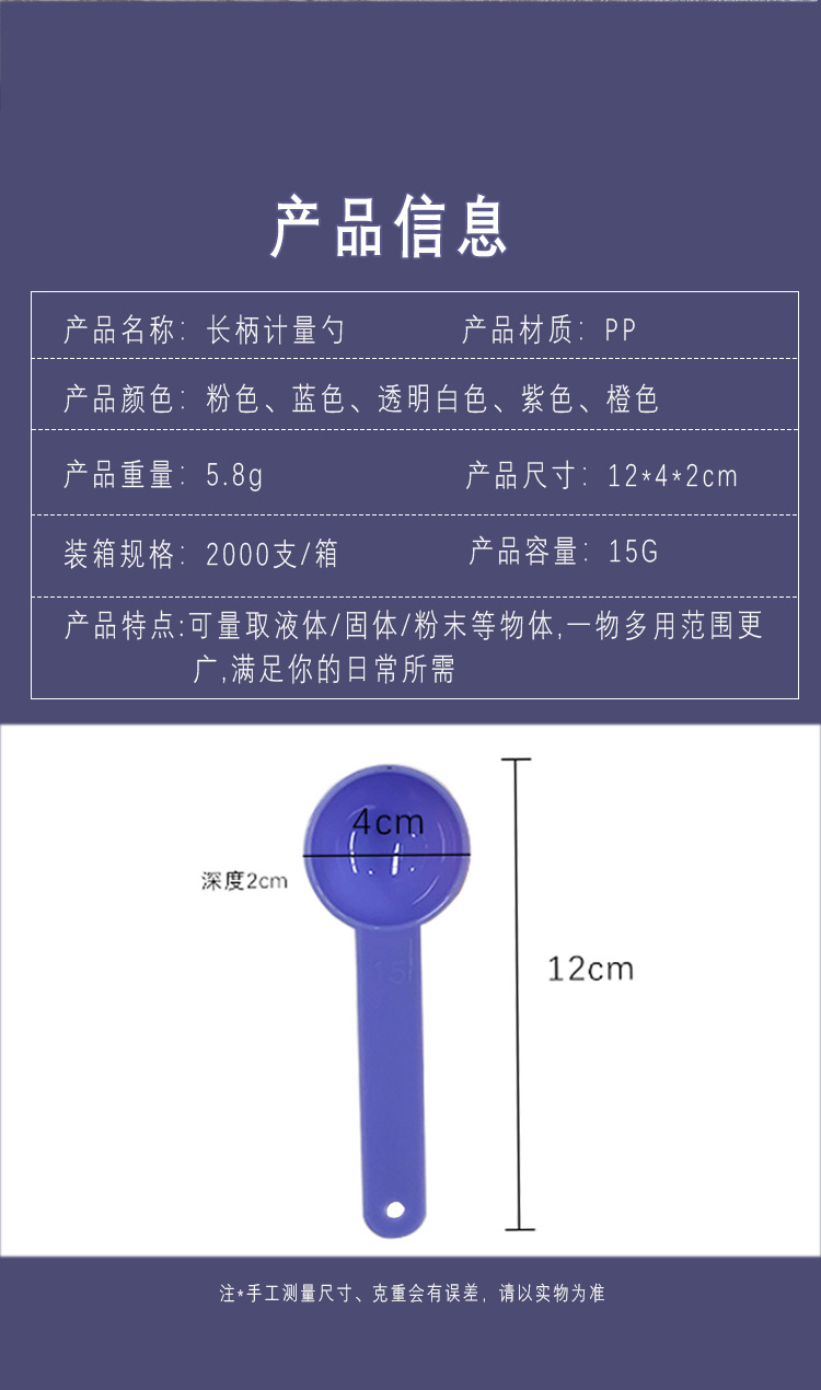 제조업체 15g 페이셜 마스크 스푼 플라스틱 롱 핸들 계량 스푼 베이킹 스푼 정량 해초 소프트 마스크 컬러 화장품 액세서리