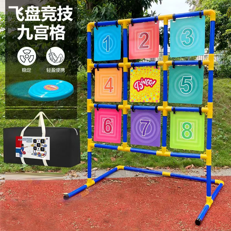 1) 比赛方法:九宫格上有1-9分九块粘板,投掷点距离九宫格5米,