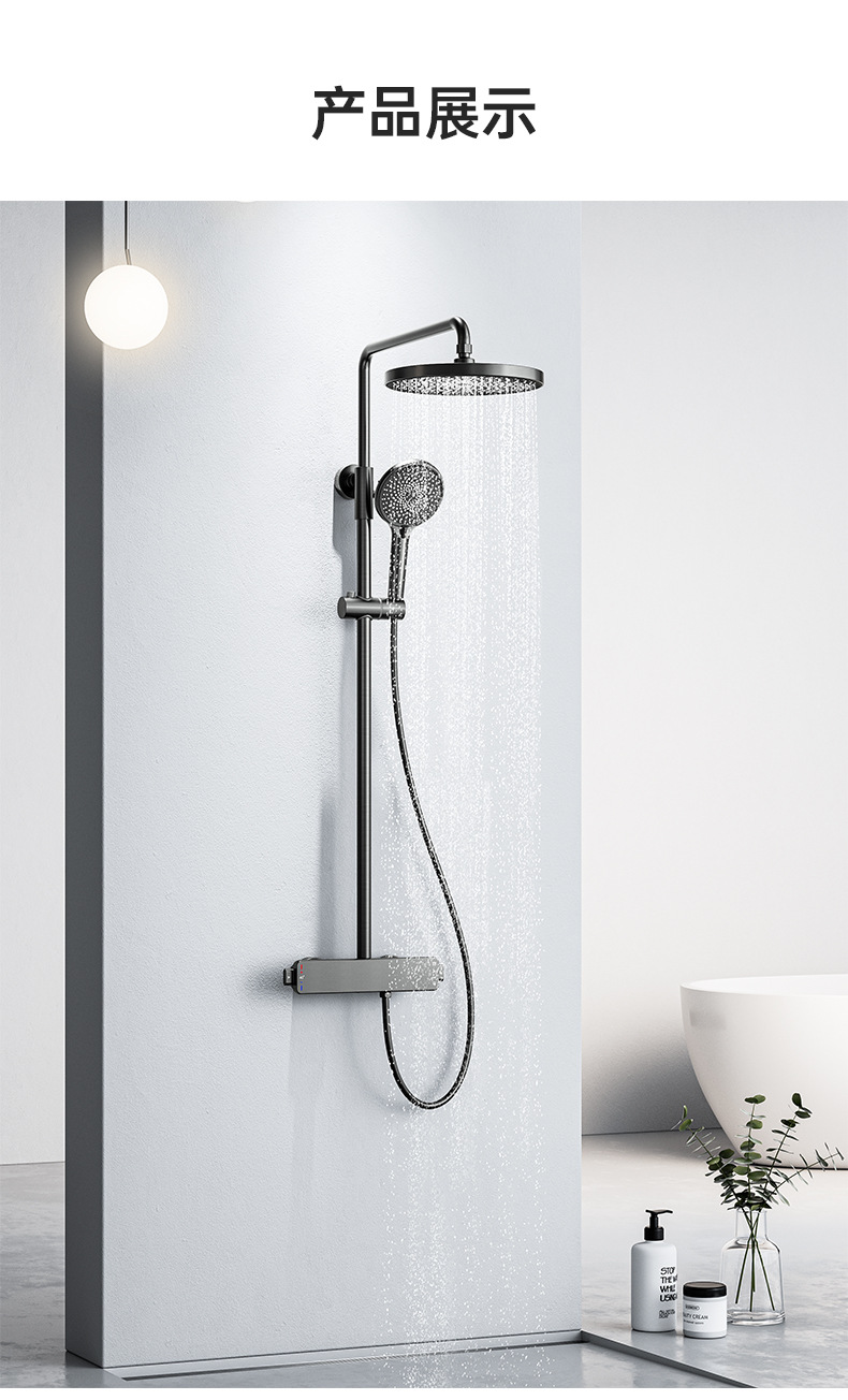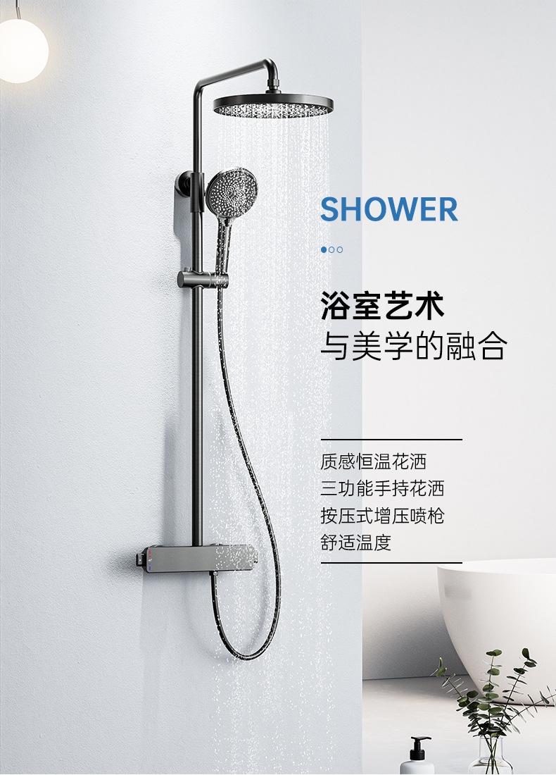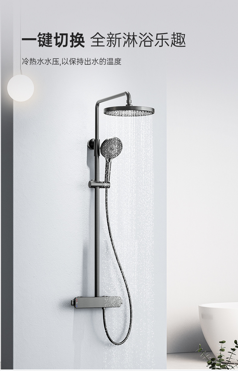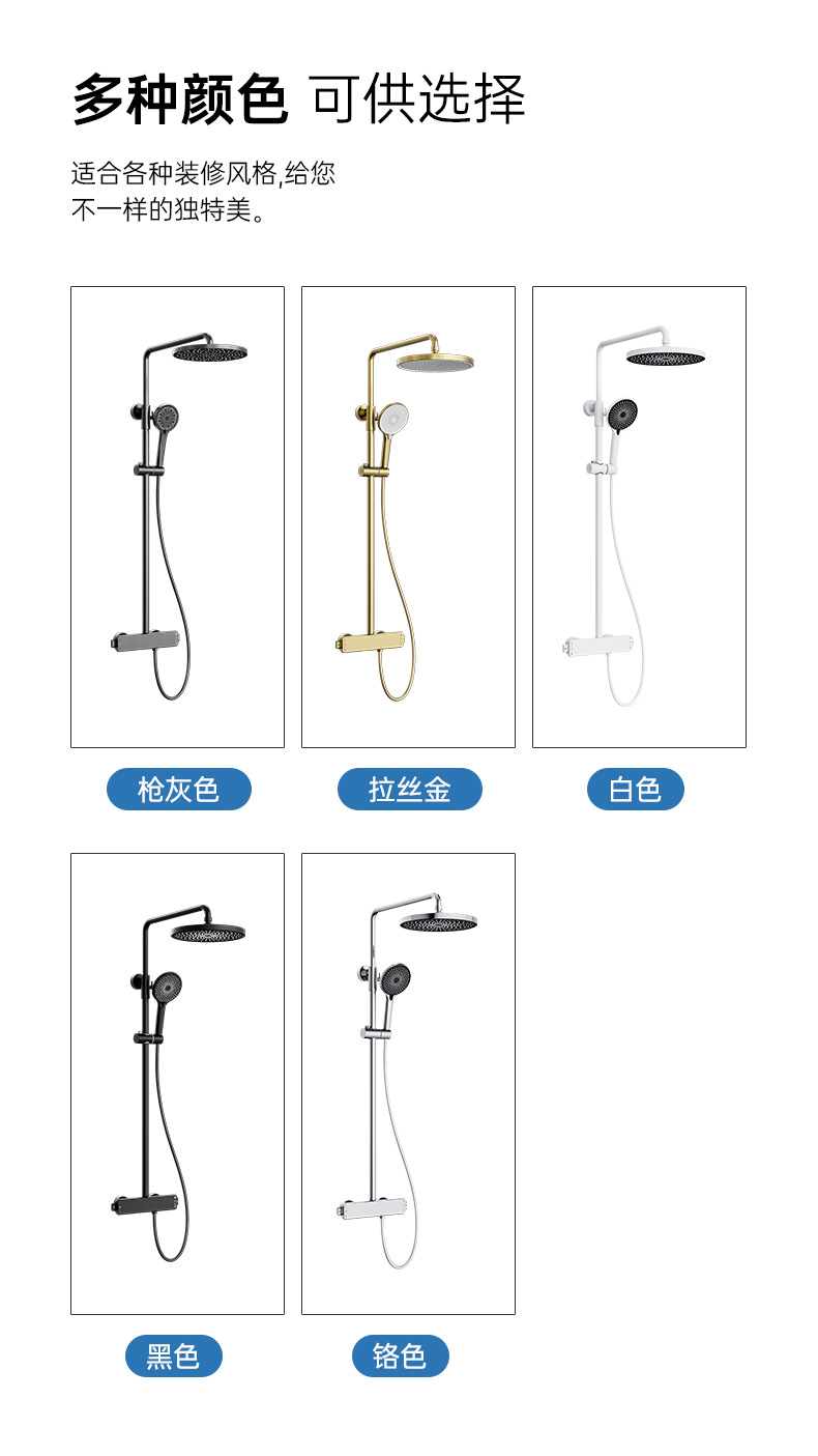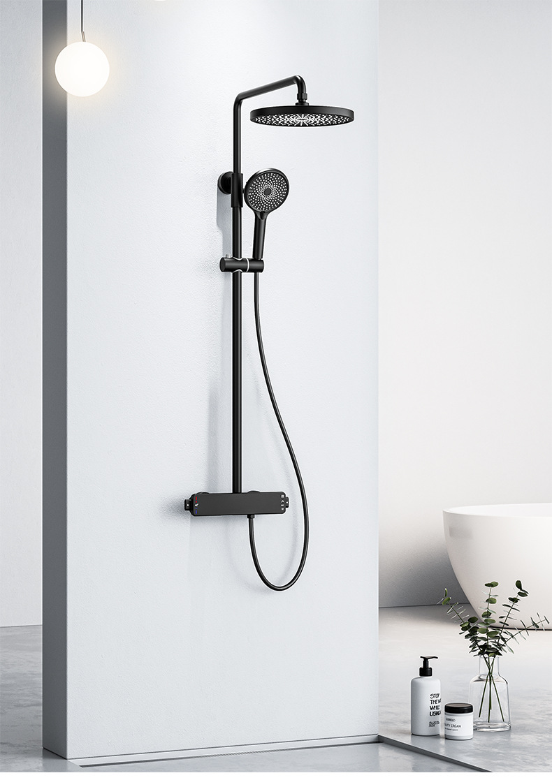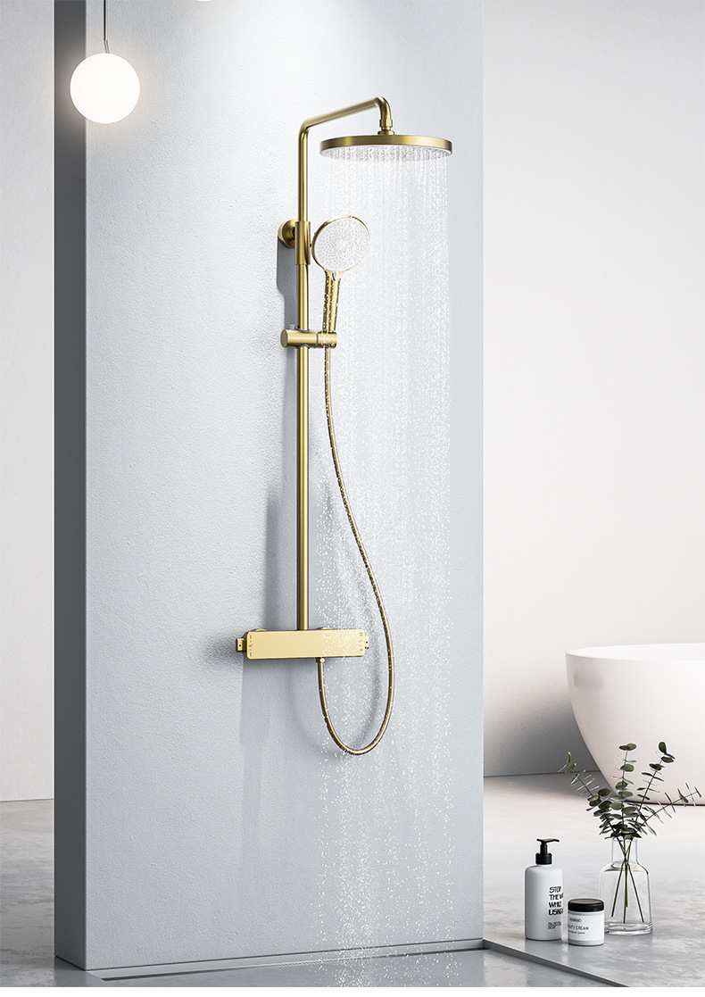 국경을 넘는 아마존 골드 컬러의 항온 조절 기능이 있는 전체 구리 미니멀리스트 샤워 헤드 세트, 가정용 및 호텔 엔지니어링용 온냉수 샤워기