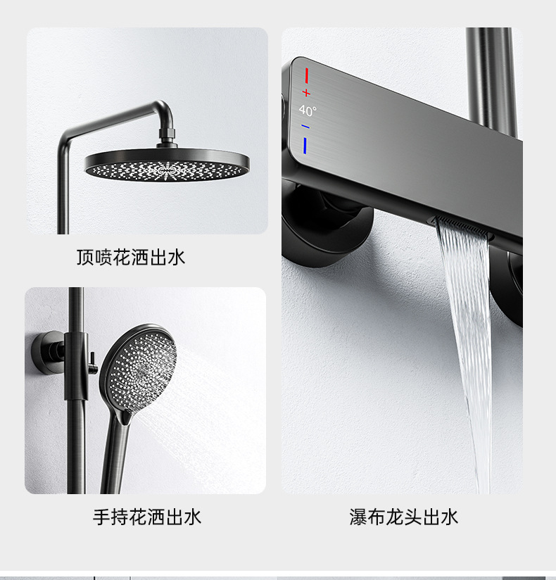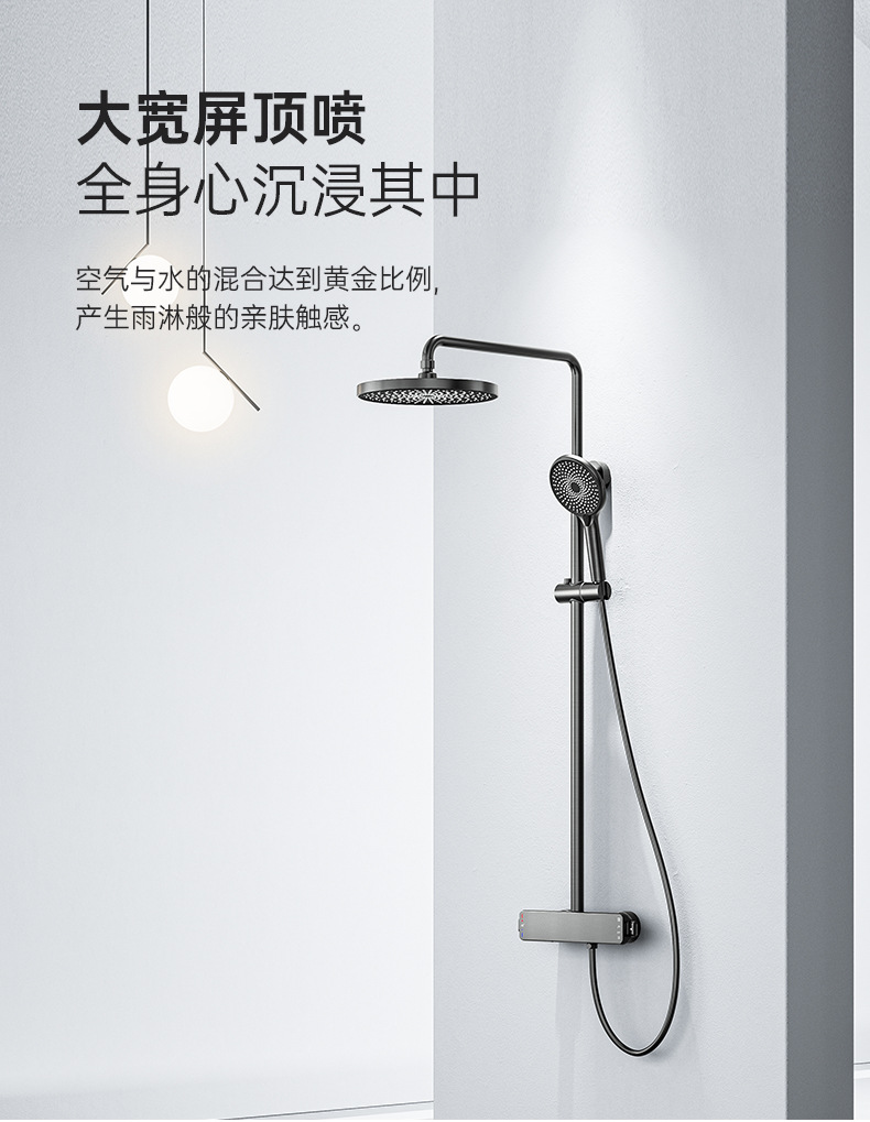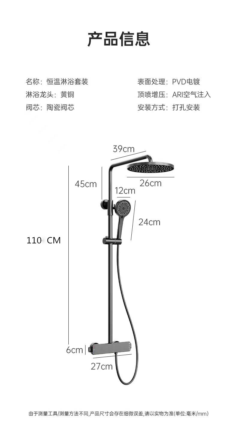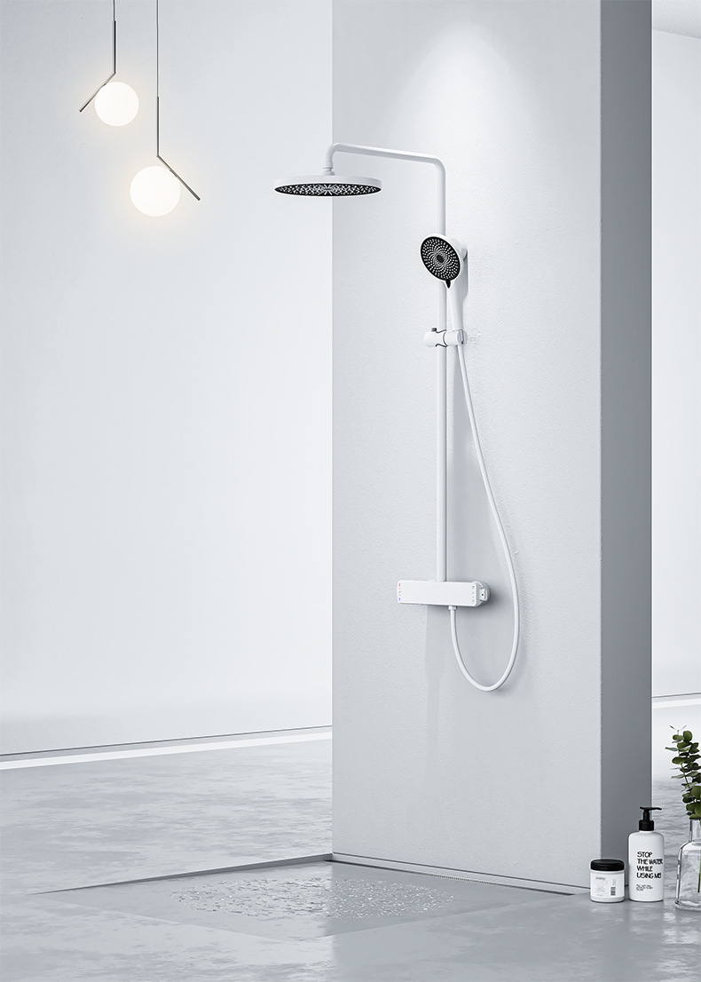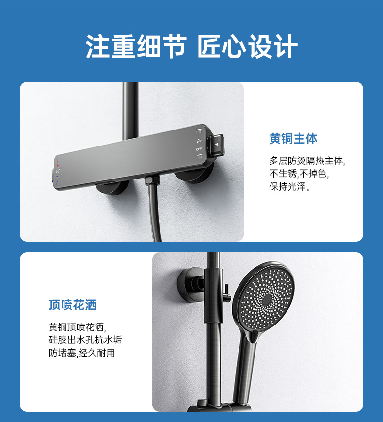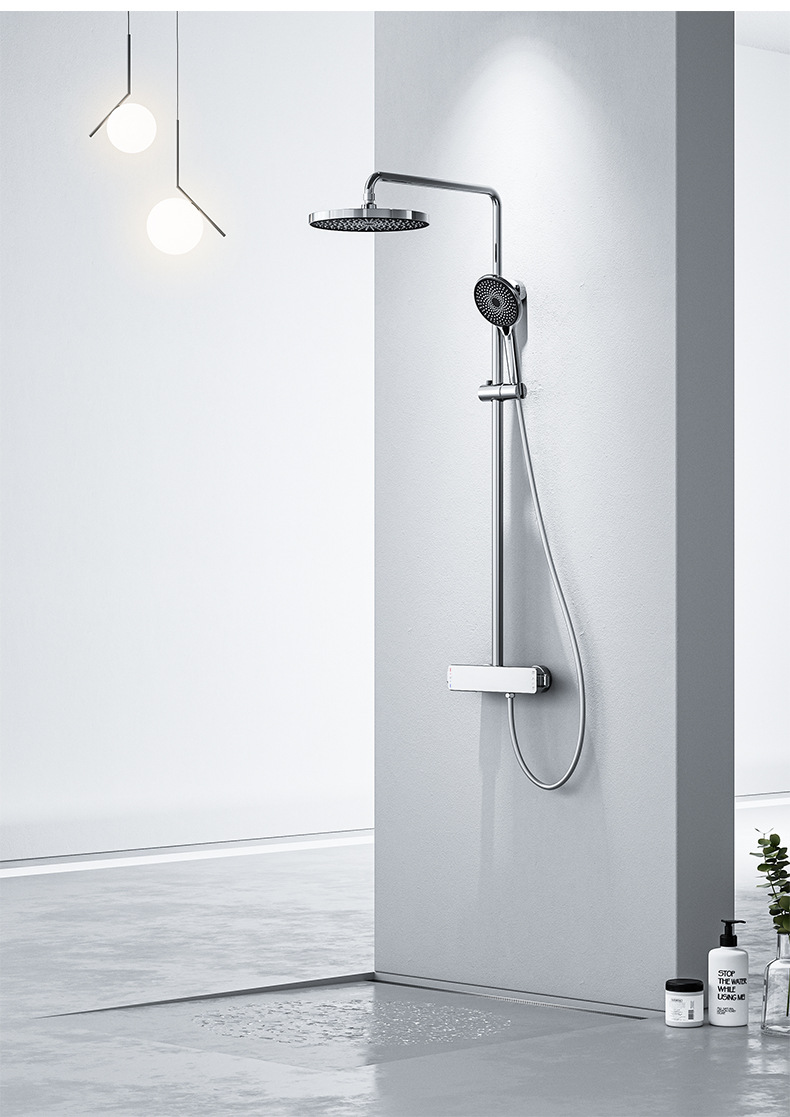 국경을 넘는 아마존 골드 컬러의 항온 조절 기능이 있는 전체 구리 미니멀리스트 샤워 헤드 세트, 가정용 및 호텔 엔지니어링용 온냉수 샤워기