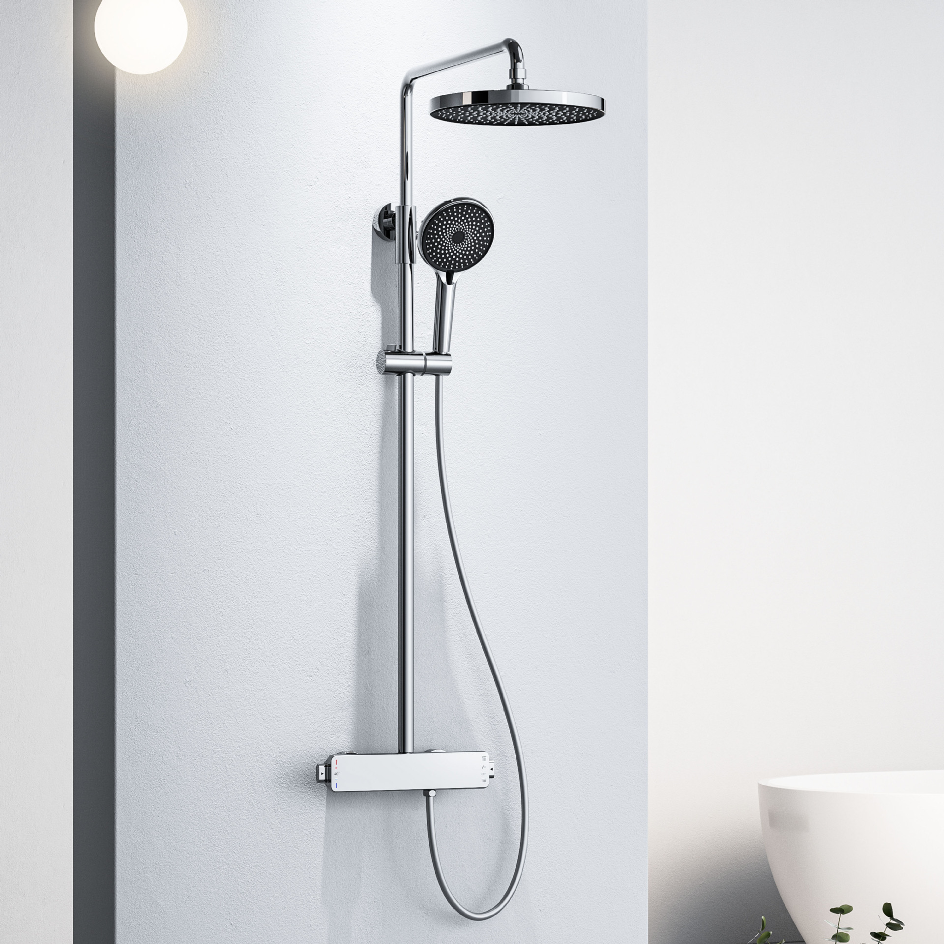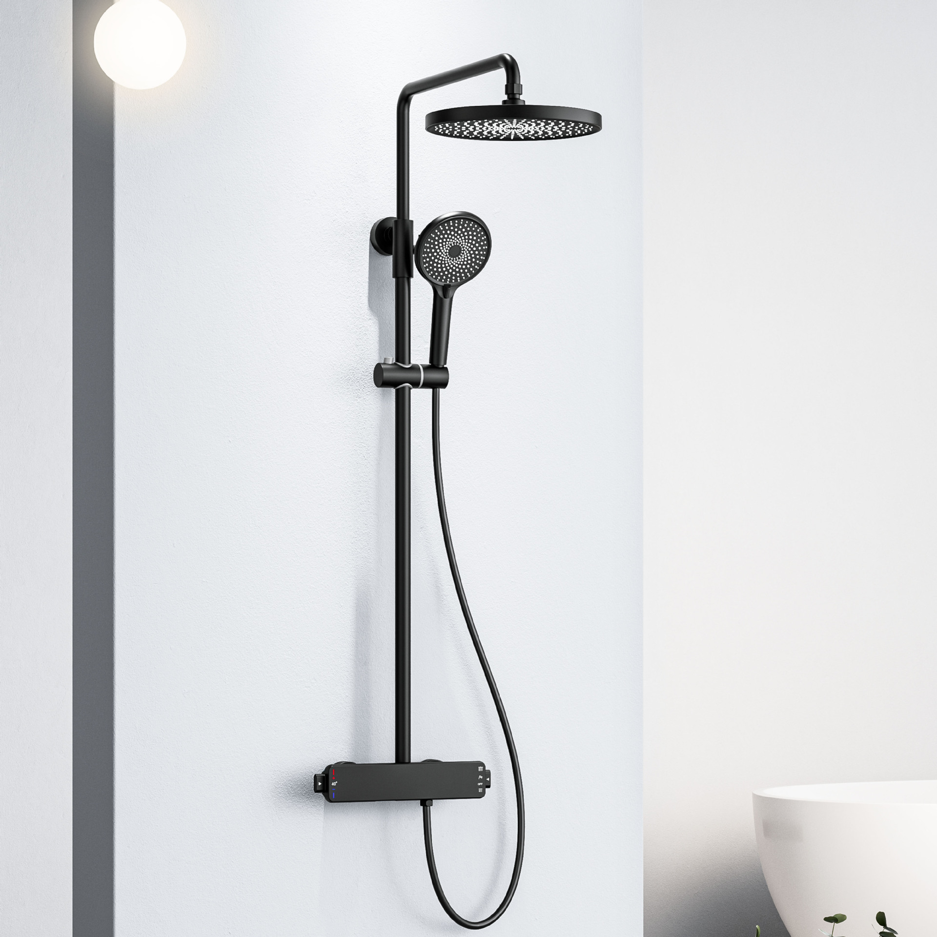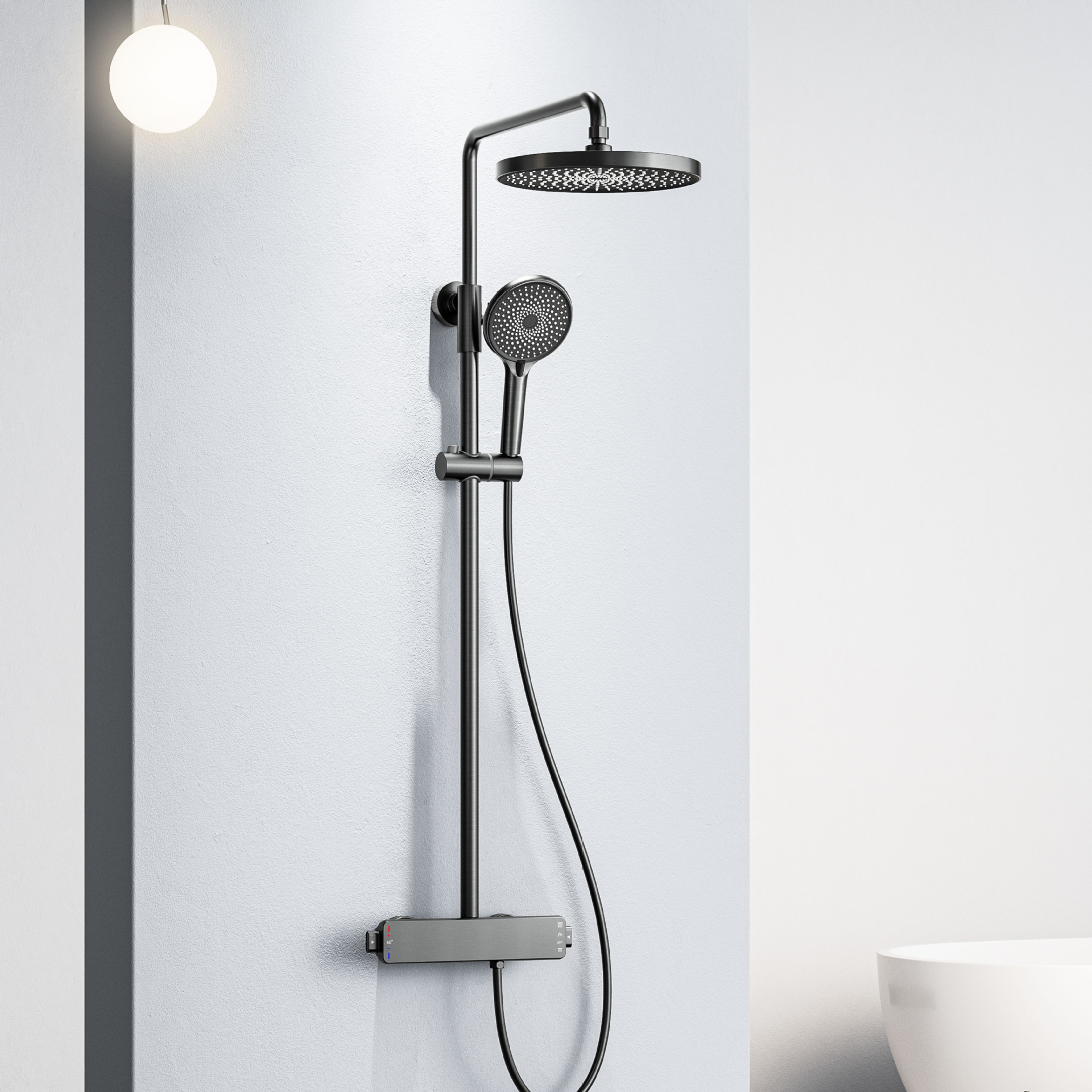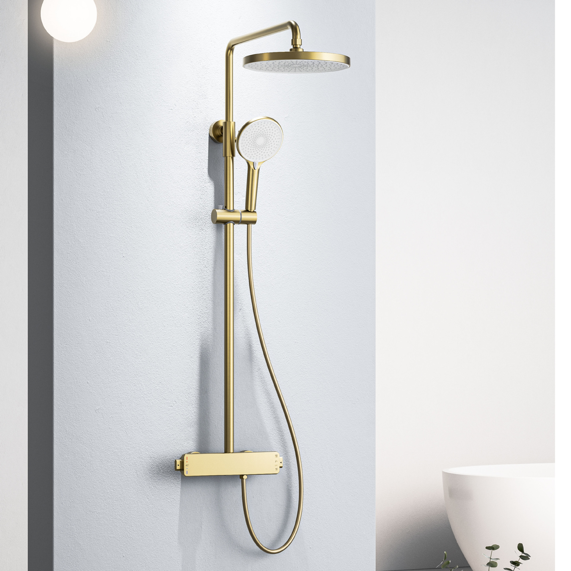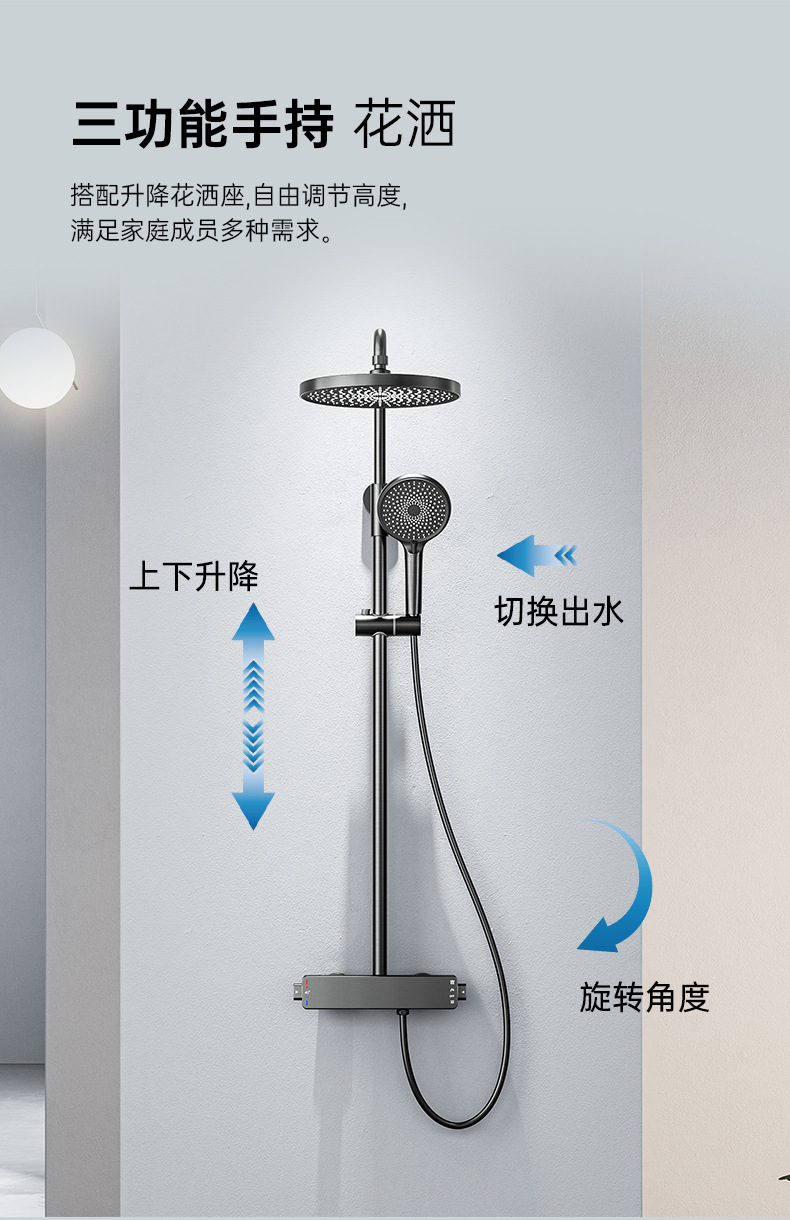 국경을 넘는 아마존 골드 컬러의 항온 조절 기능이 있는 전체 구리 미니멀리스트 샤워 헤드 세트, 가정용 및 호텔 엔지니어링용 온냉수 샤워기