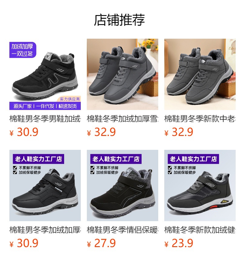 남성용 겨울용 대형 사이즈 보온 면화 신발, 두꺼운 스노우 부츠, 따뜻한 면화 부츠, 등산 및 걷기용 신발, 커플 및 노인용 신발스토어 가기