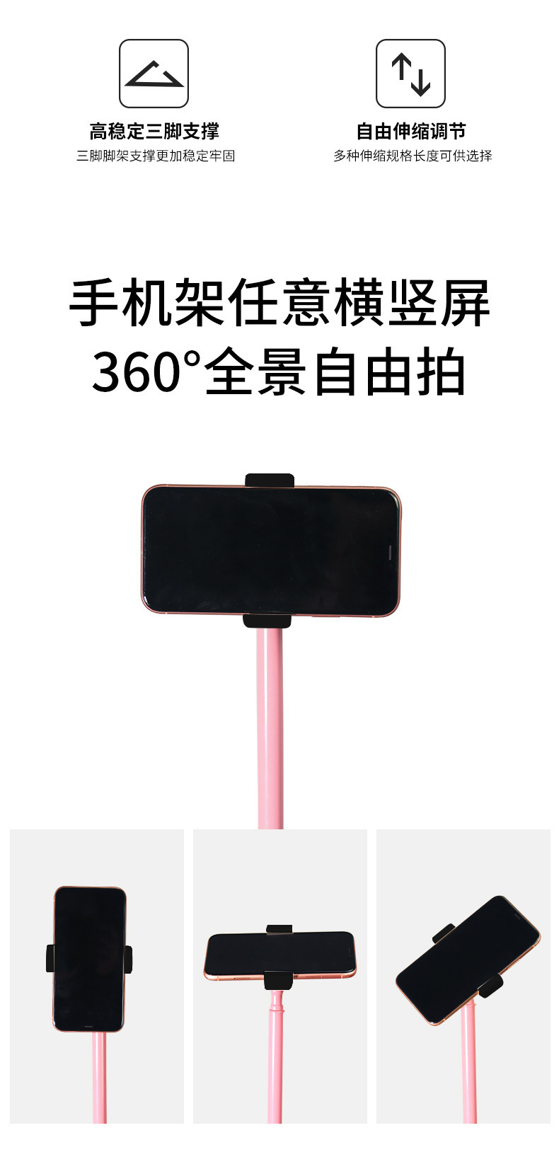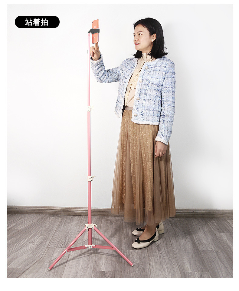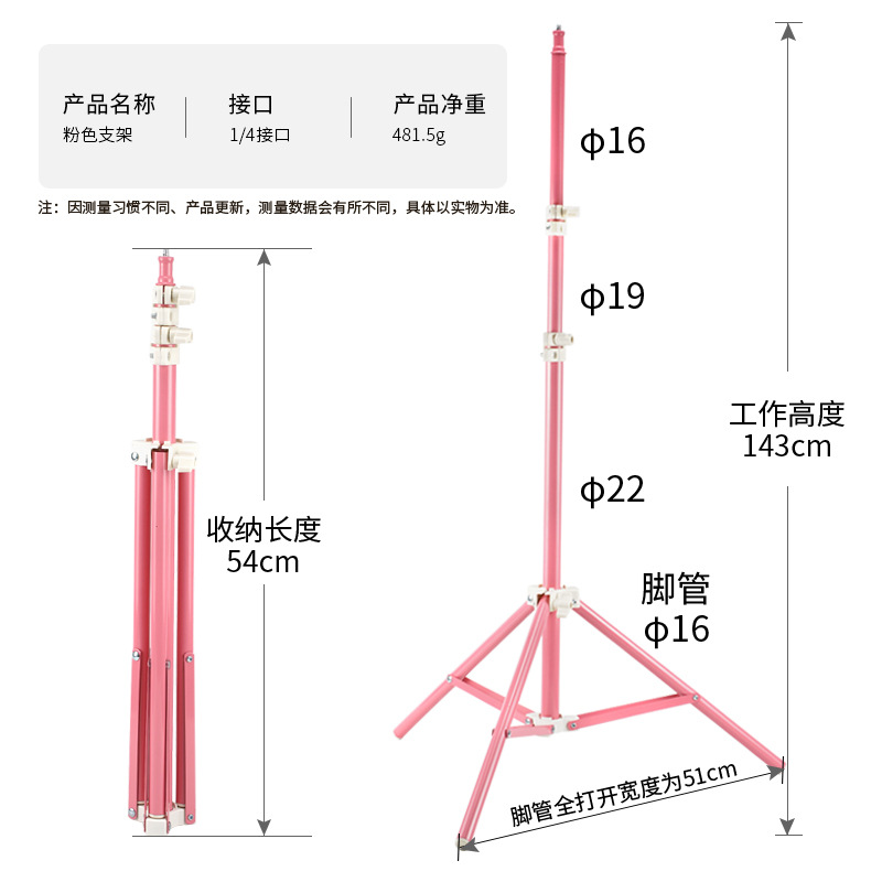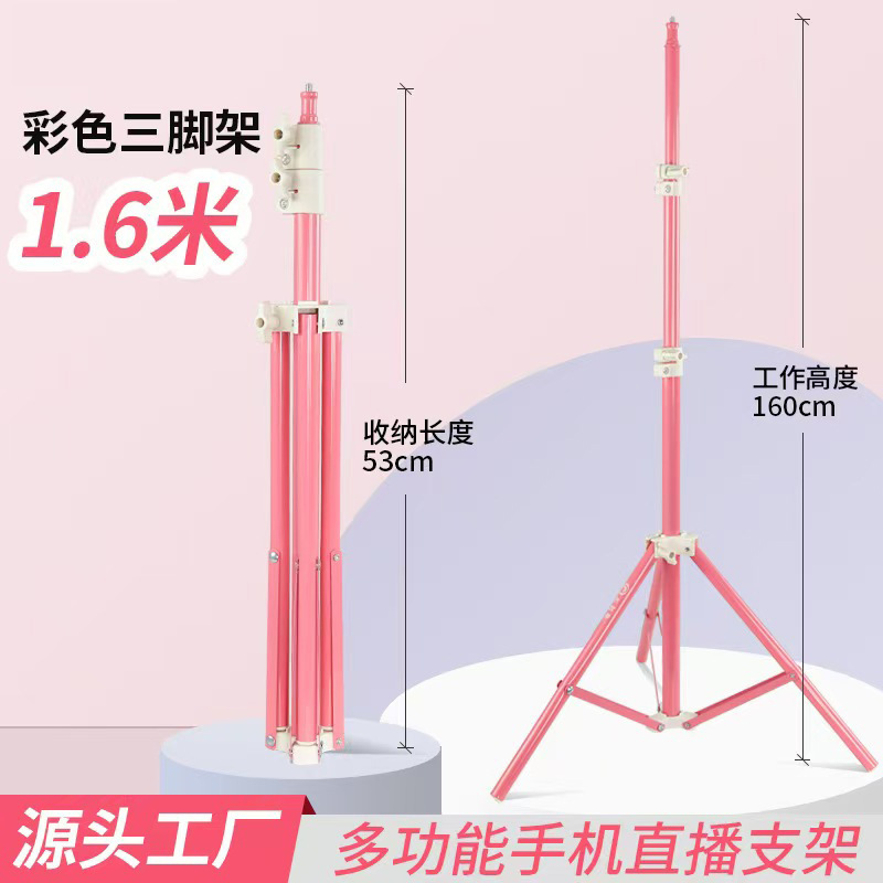 1.6 미터 핑크 삼각대 트레몰로 그물 레드 앵커 라이브 휴대 전화 브래킷 필 라이트 텔레스코픽 플로어 램프 스탠드