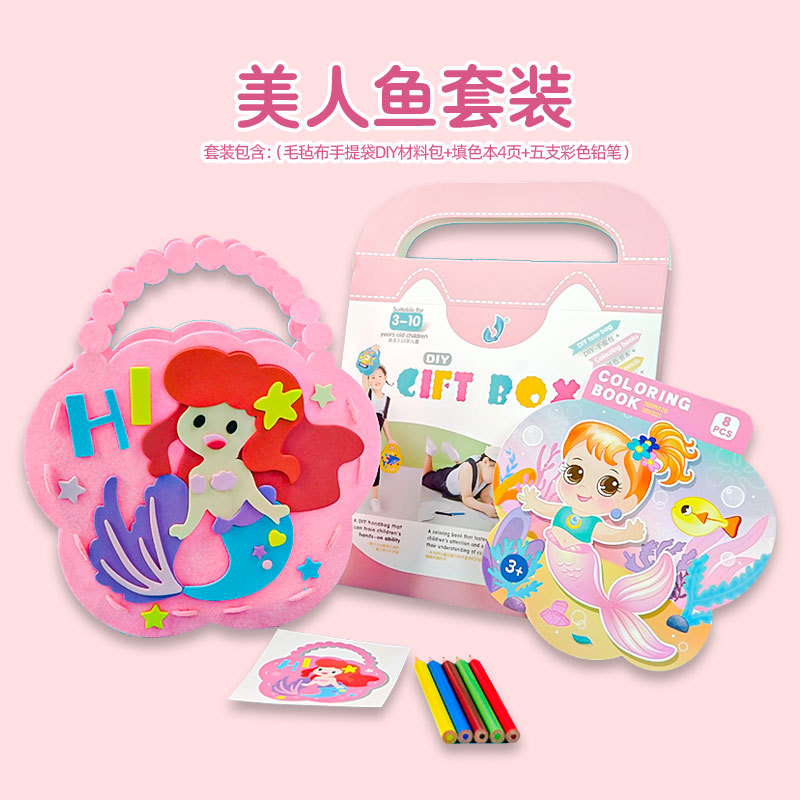 DIY 공주 펠트 천 핸드백 만화 어린이 EVA 스티커 대형 수제 스티커 3D 입체 퍼즐