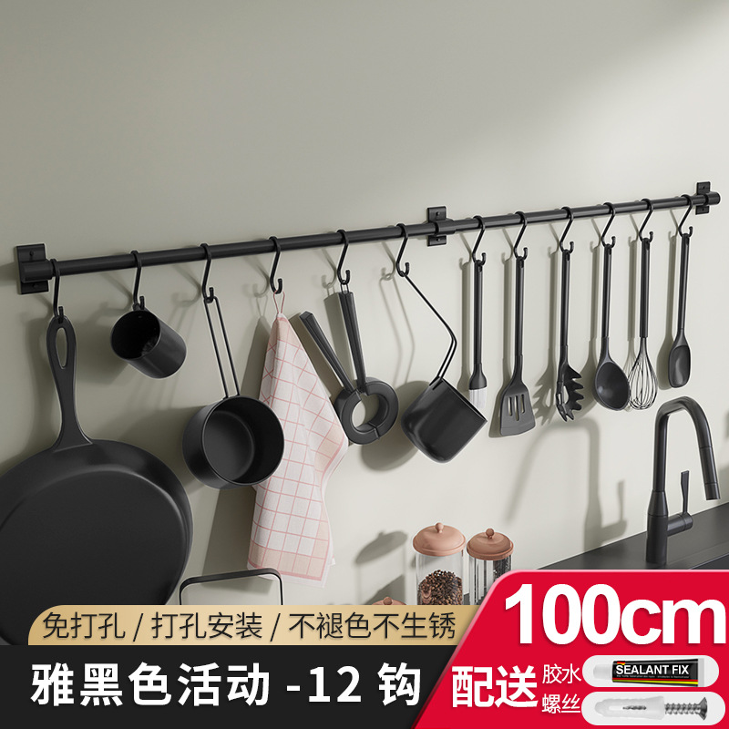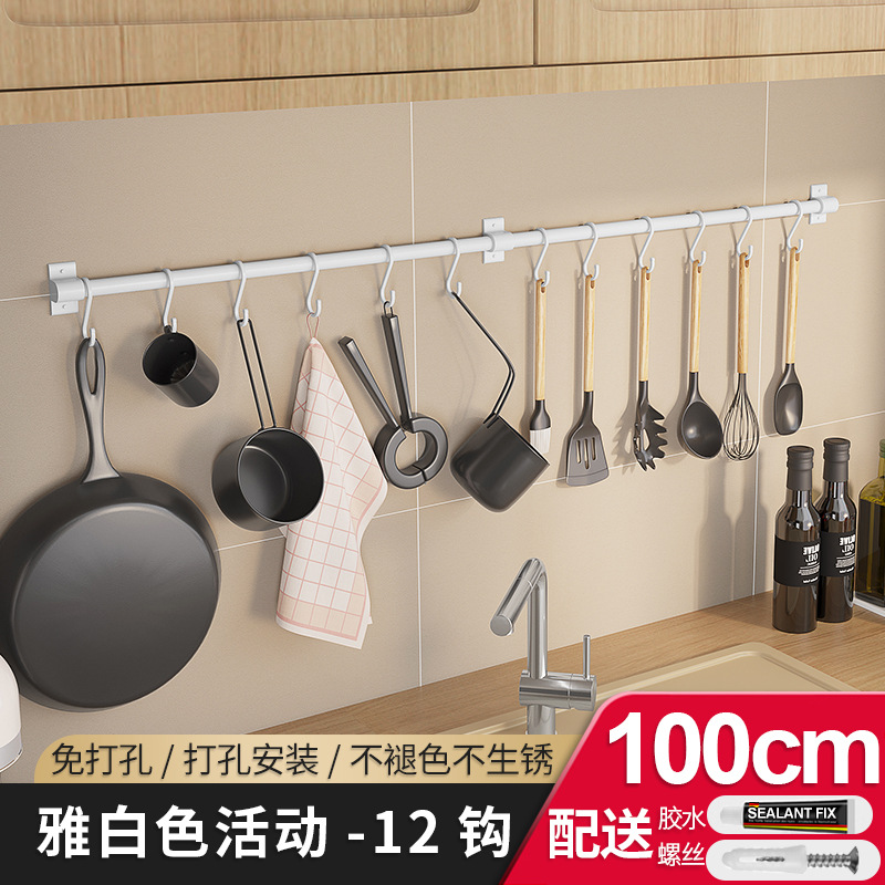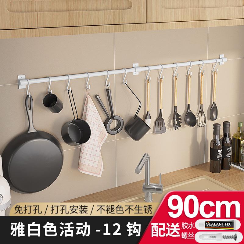 사용자 정의 크기 이동식 주방 후크 벽걸이 형 주방 수납 랙 공간 알루미늄 펀치 프리 주방 걸이 막대