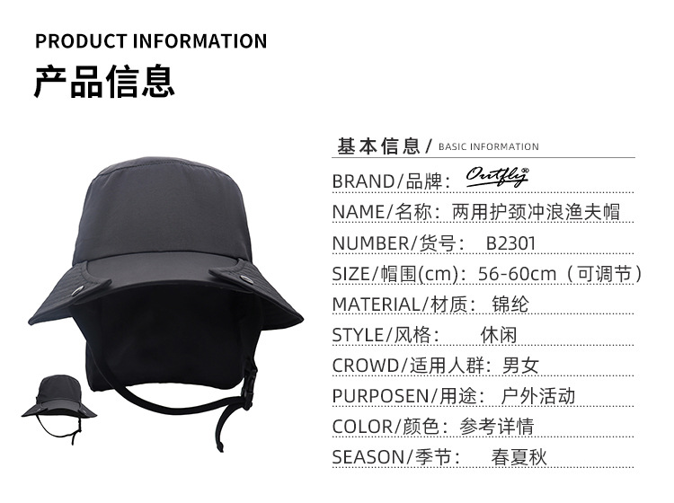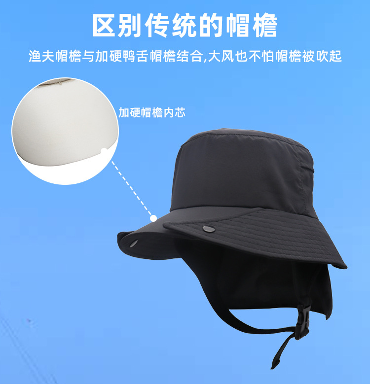 UPF50 + 큰 처마 분리형 어부 모자 라이딩 야생 모험 낚시 속건 캡 선 스크린 목 보호 서핑 캡 크로스 보더