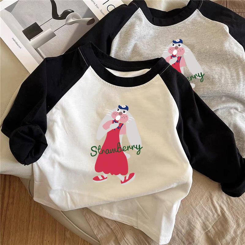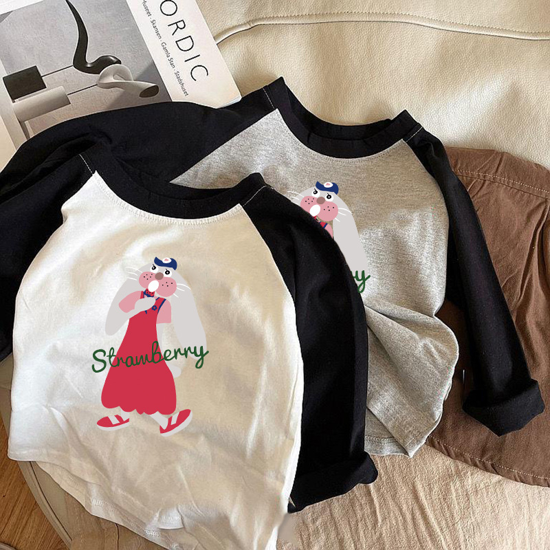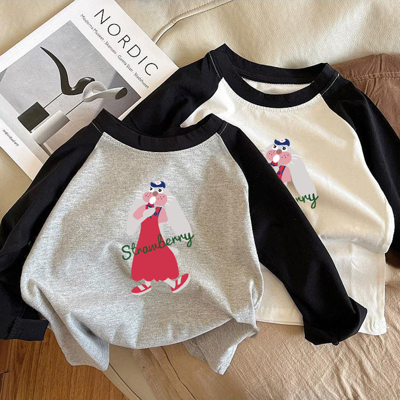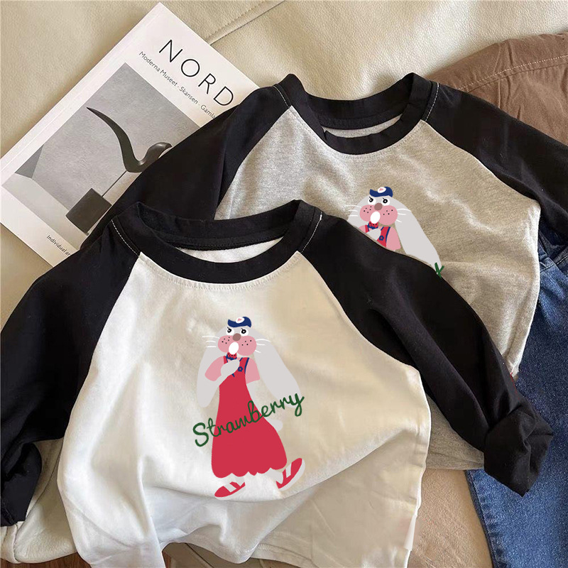 순면 귀여운 어린이 티셔츠 긴팔 남성 및 여성 아동복 2024 만화 토끼 어린이 탑베이스 셔츠 봄과 가을스토어 가기