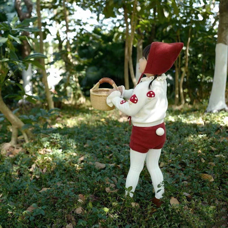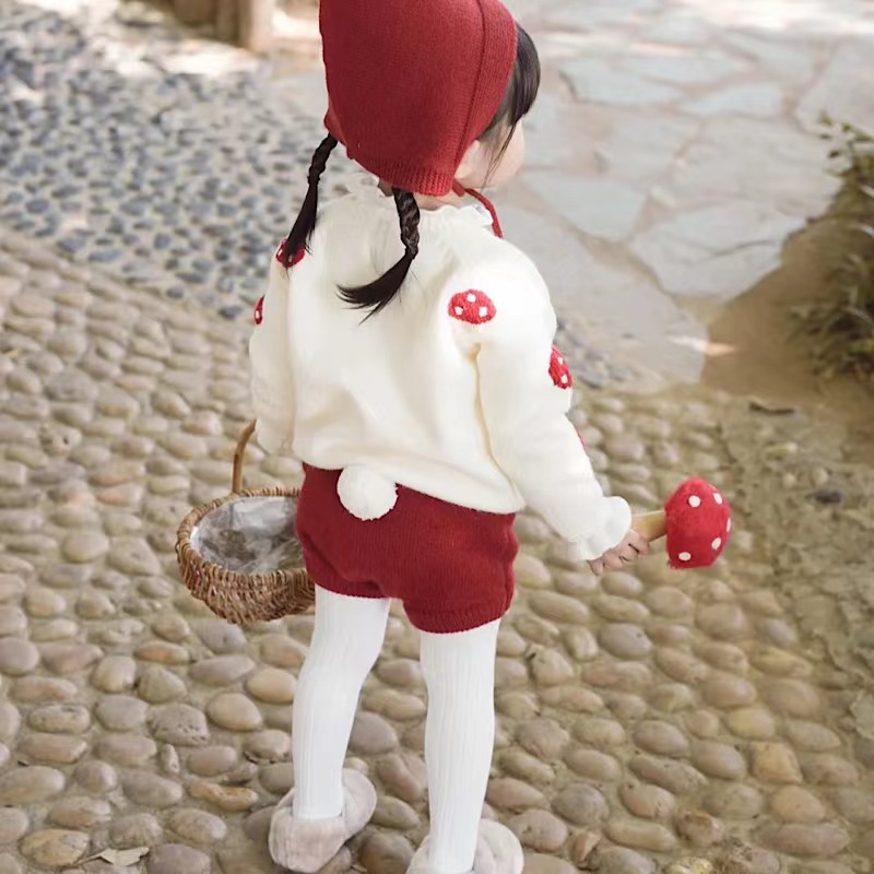 크리스마스 소녀 세트 어린이 캐시미어 스웨터 손 수 놓은 버섯 스웨터 토끼 꼬리 반바지 세트 아동 의류 도매스토어 가기