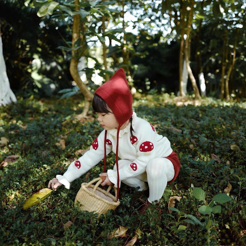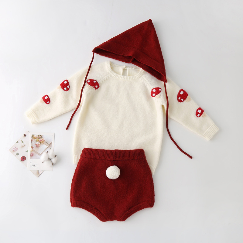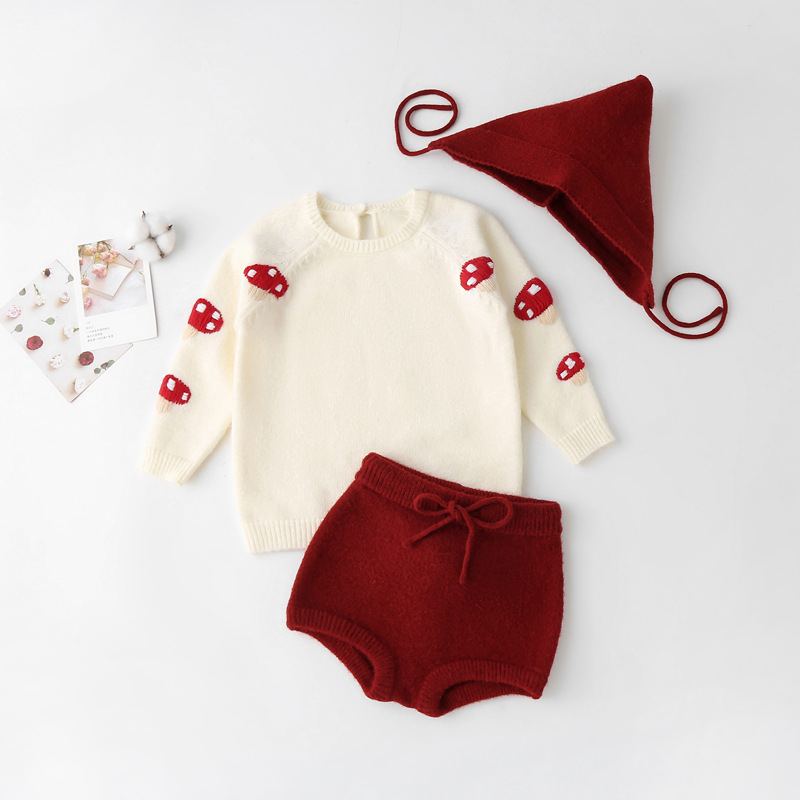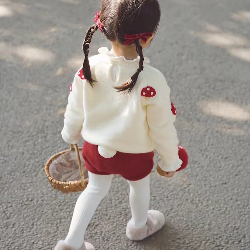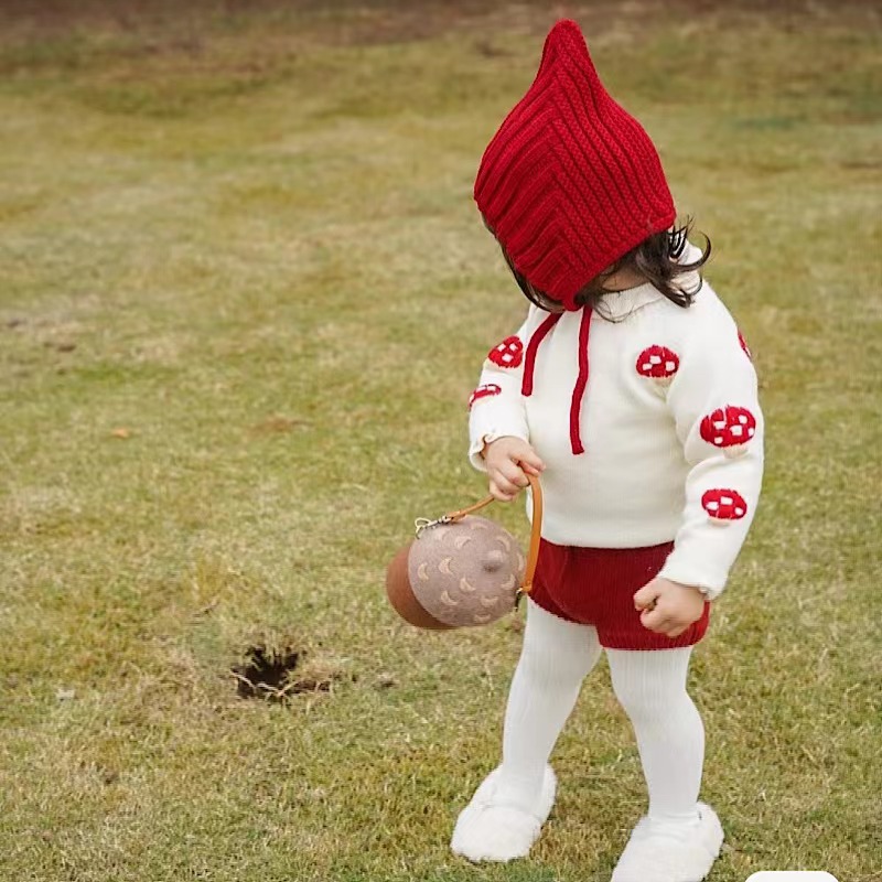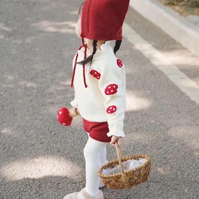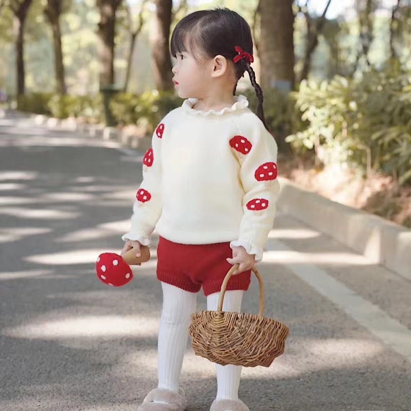 여자 니트 세트 캐시미어 스웨터 손으로 수 놓은 버섯 스웨터 토끼 꼬리 반바지 아동 의류 도매스토어 가기