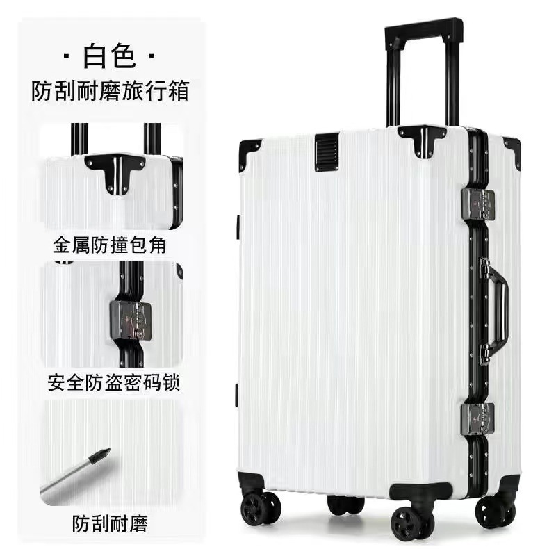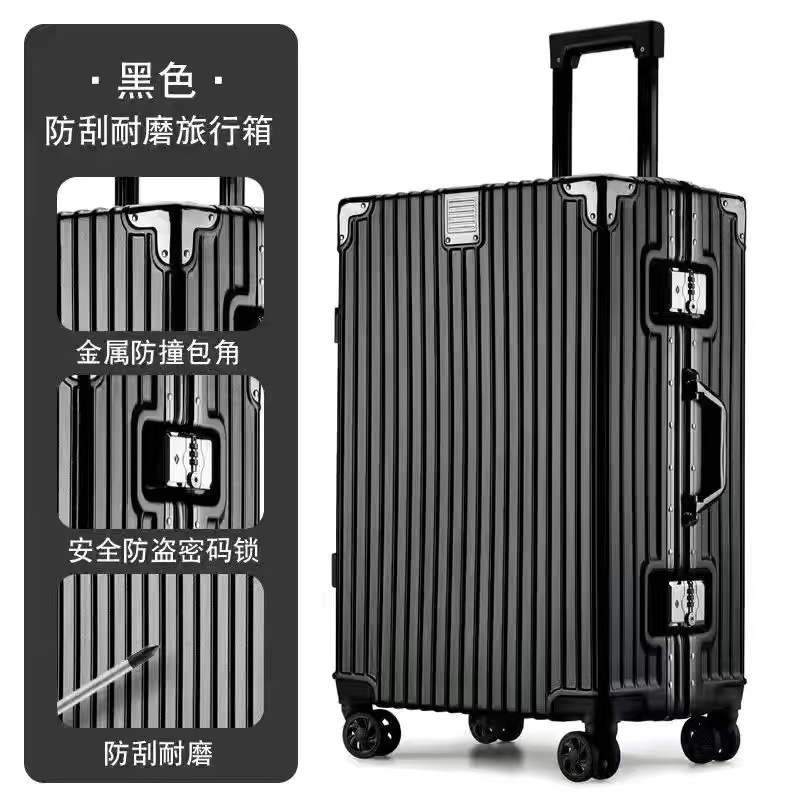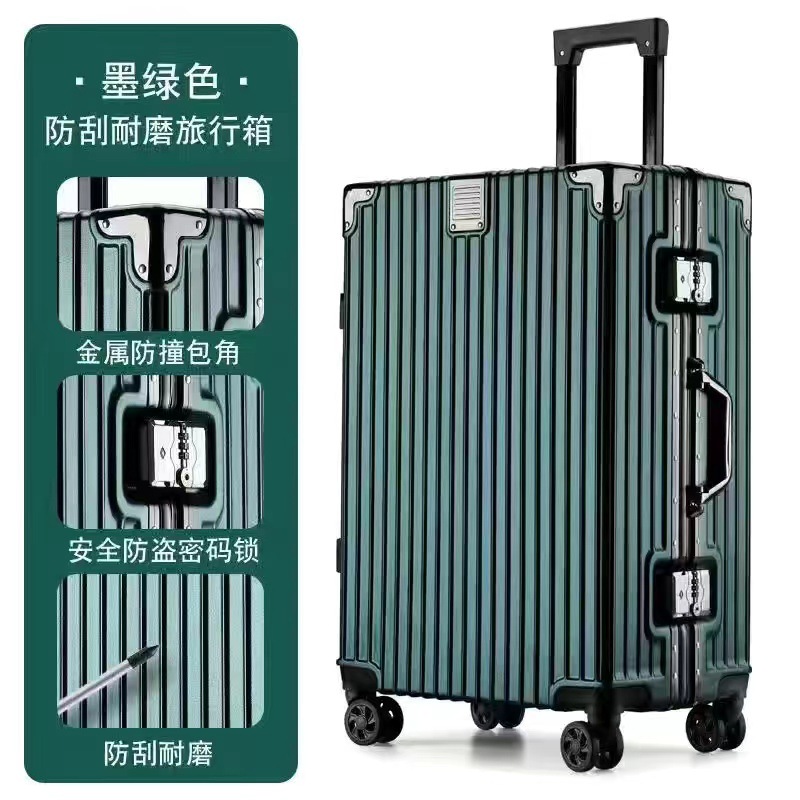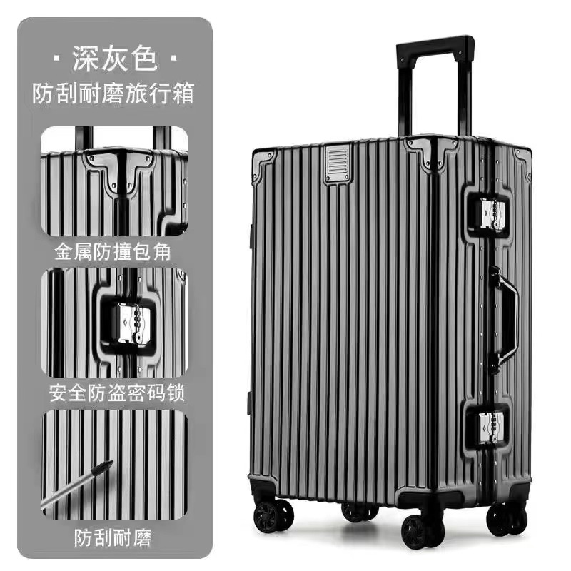머리카락 직각 알루미늄 프레임 수하물 케이스 레트로 여행 가방 학생 비밀번호 박스 24 대용량 유니버설 휠 가방