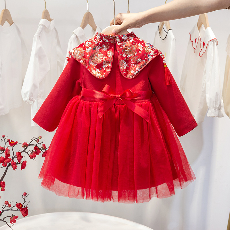 어린이 고대 중국 의류 중국 스타일 여자 아기 새해 옷 여자 새해 옷 당나라 세트 두꺼운 겨울 옷
