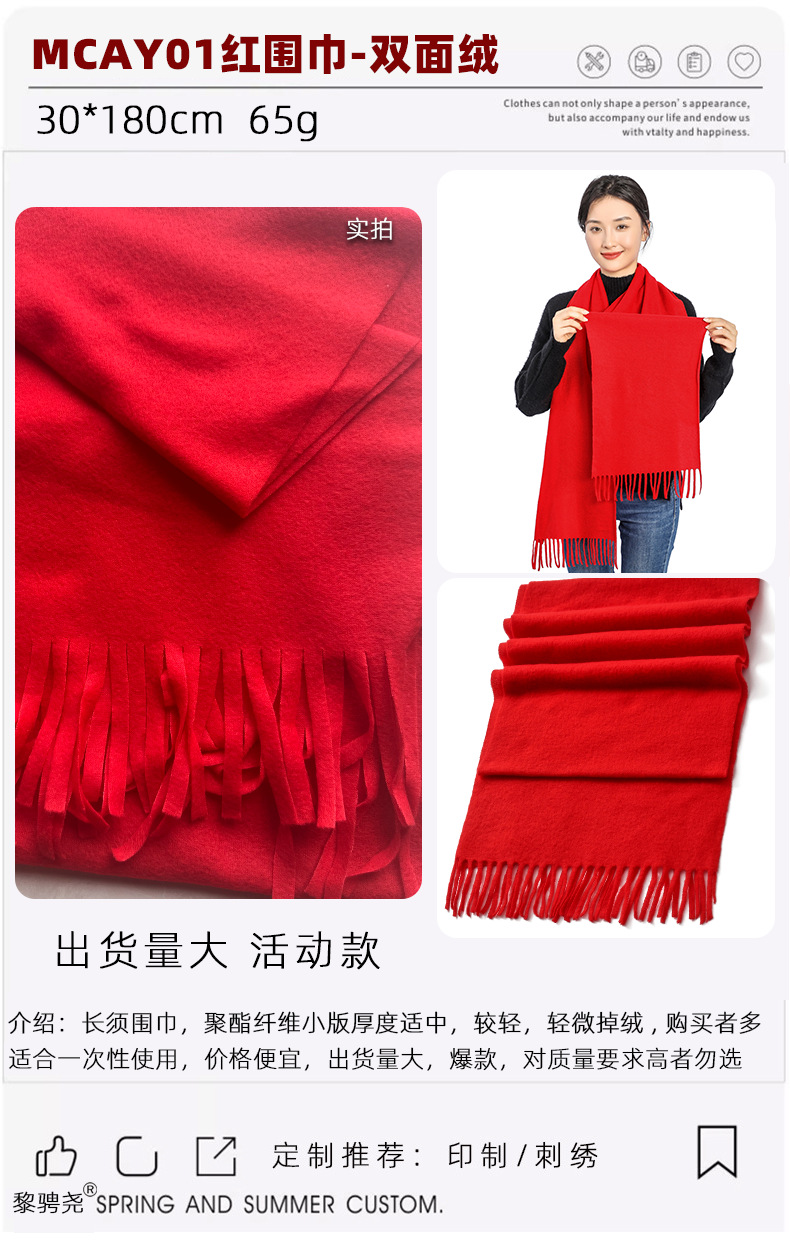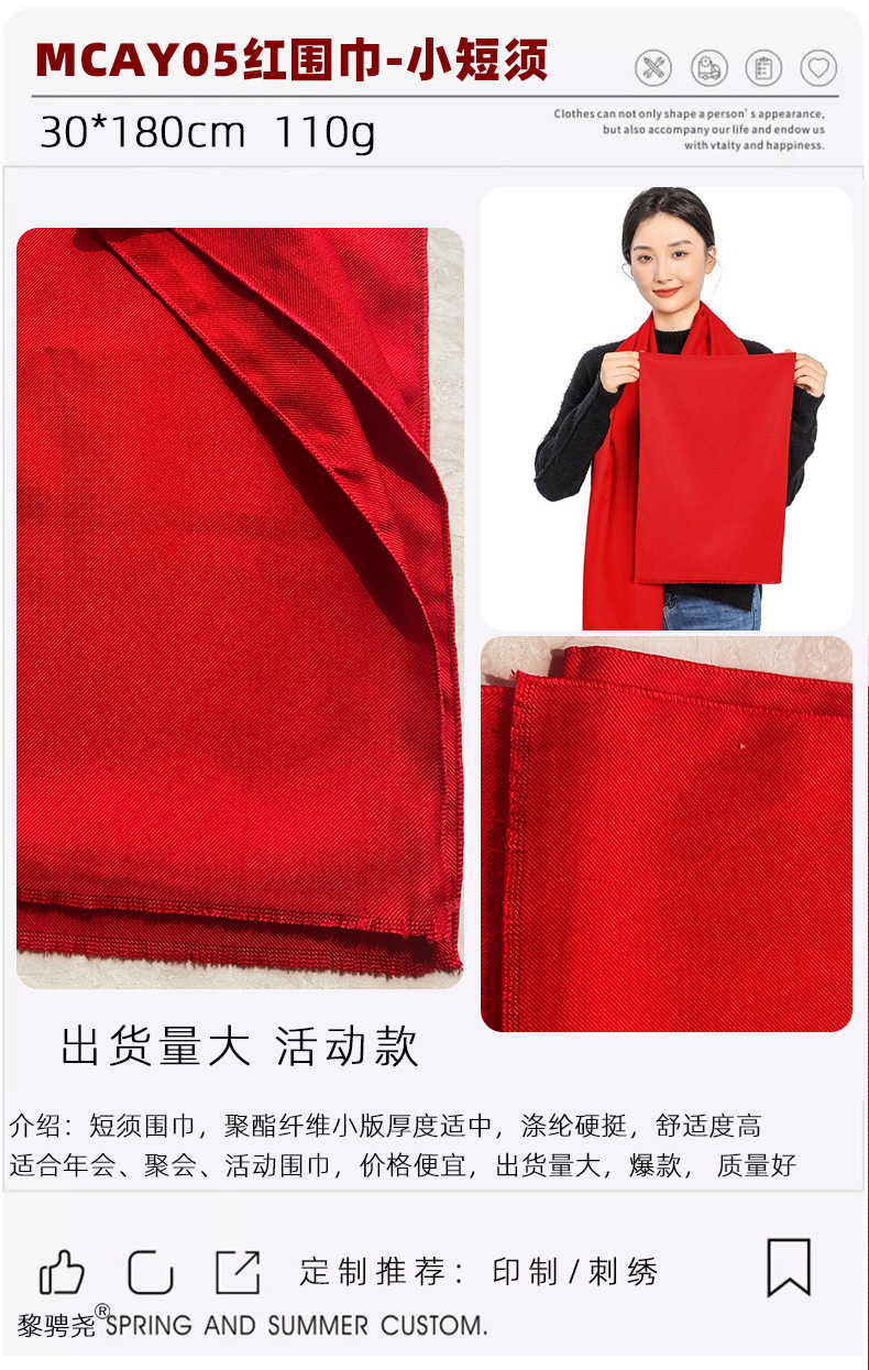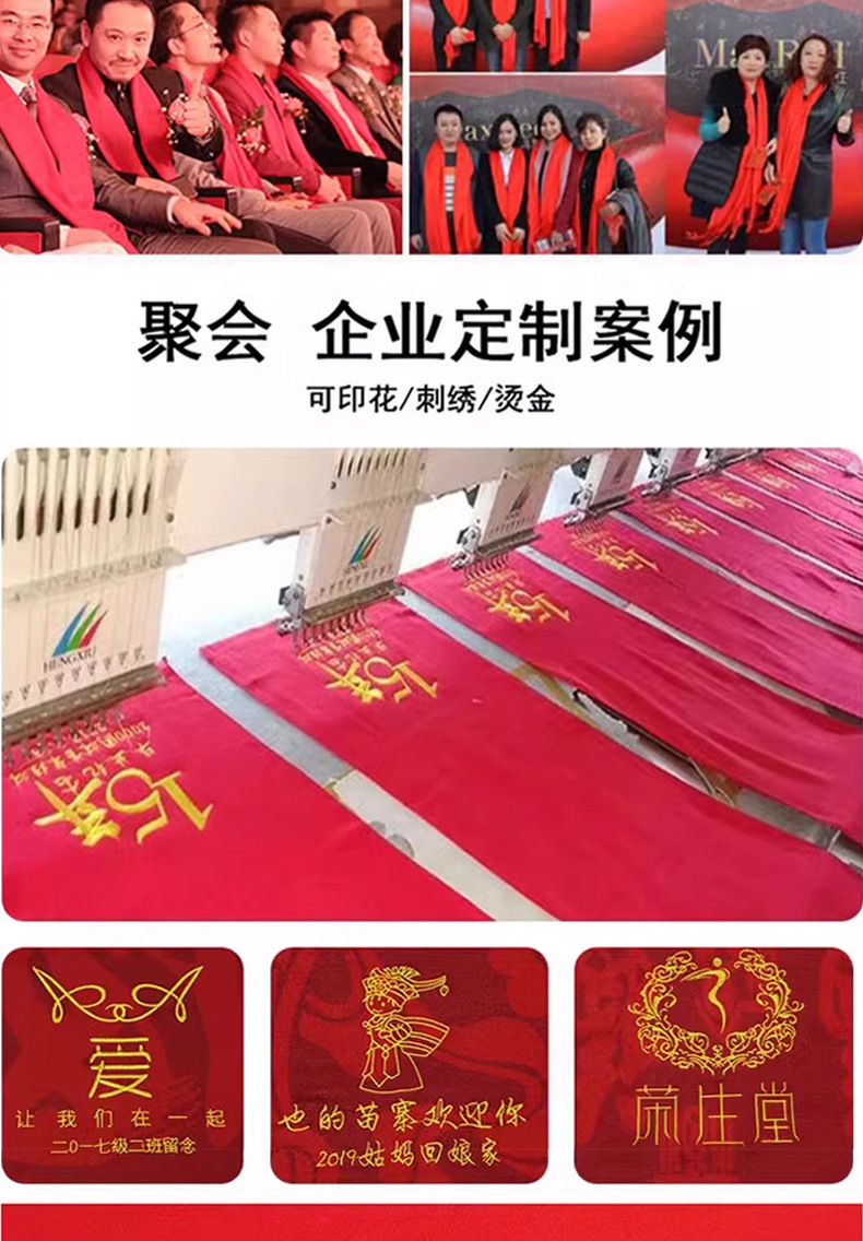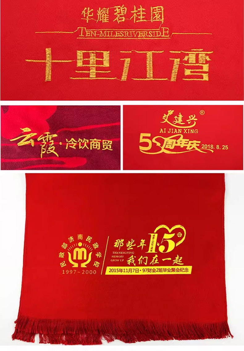 빨간 스카프 맞춤 인쇄 로고 광저우 심천 제조업체 재고 있음 연례 회의용 큰 빨간색 스카프 숄 긴급 주문 제작스토어 가기