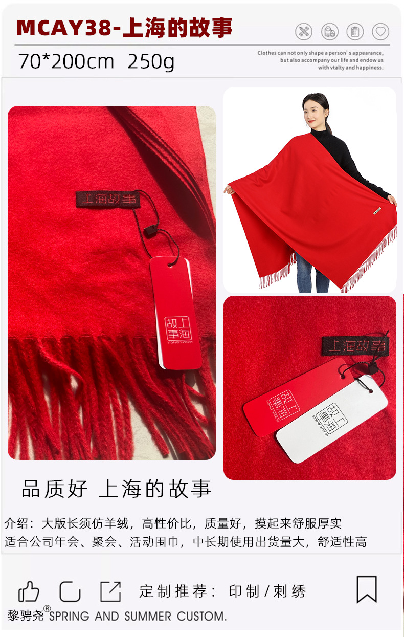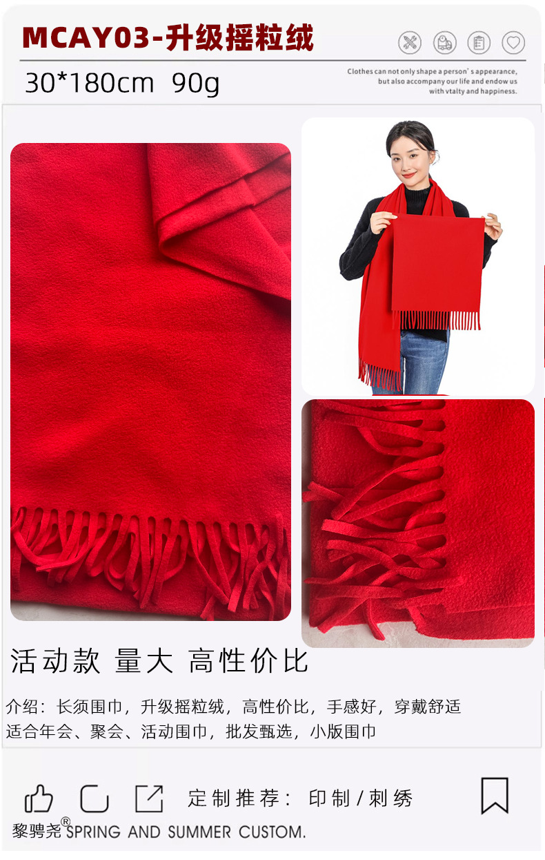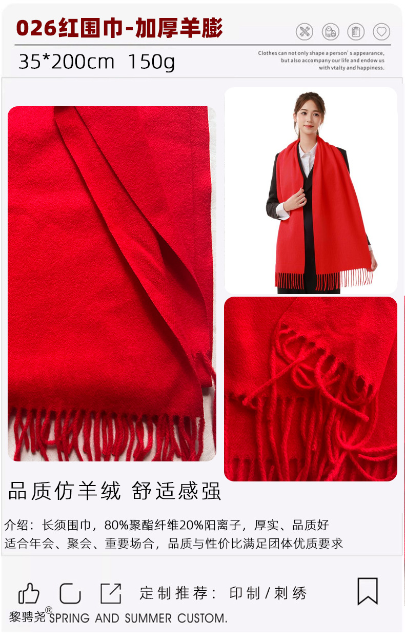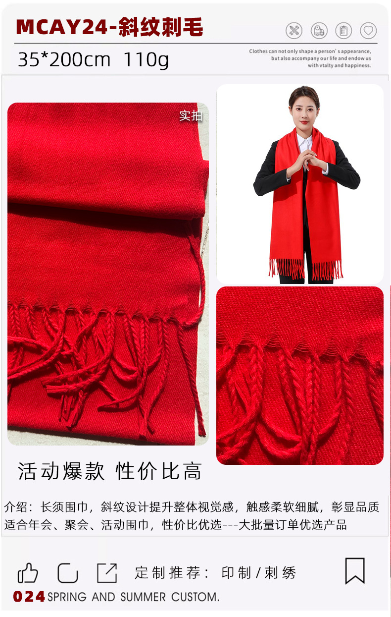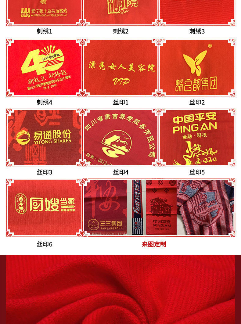 빨간 스카프 맞춤 인쇄 로고 광저우 심천 제조업체 재고 있음 연례 회의용 큰 빨간색 스카프 숄 긴급 주문 제작스토어 가기