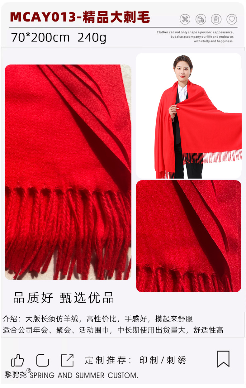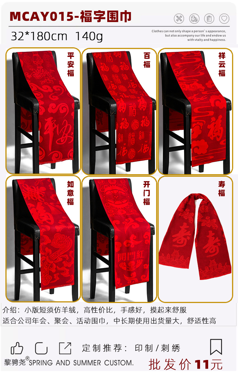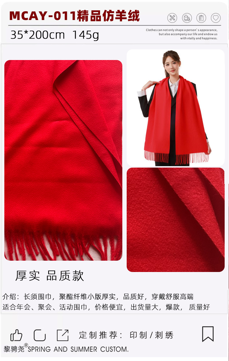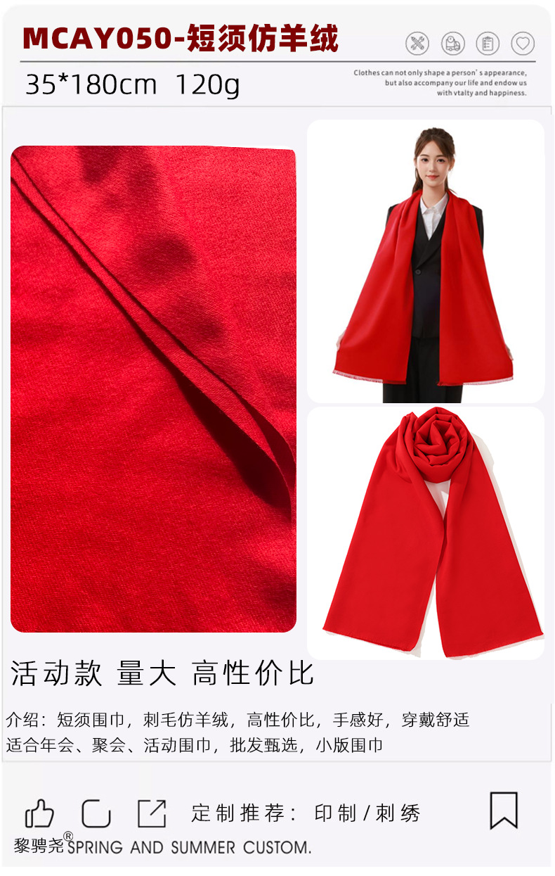 빨간 스카프 맞춤 인쇄 로고 광저우 심천 제조업체 재고 있음 연례 회의용 큰 빨간색 스카프 숄 긴급 주문 제작스토어 가기