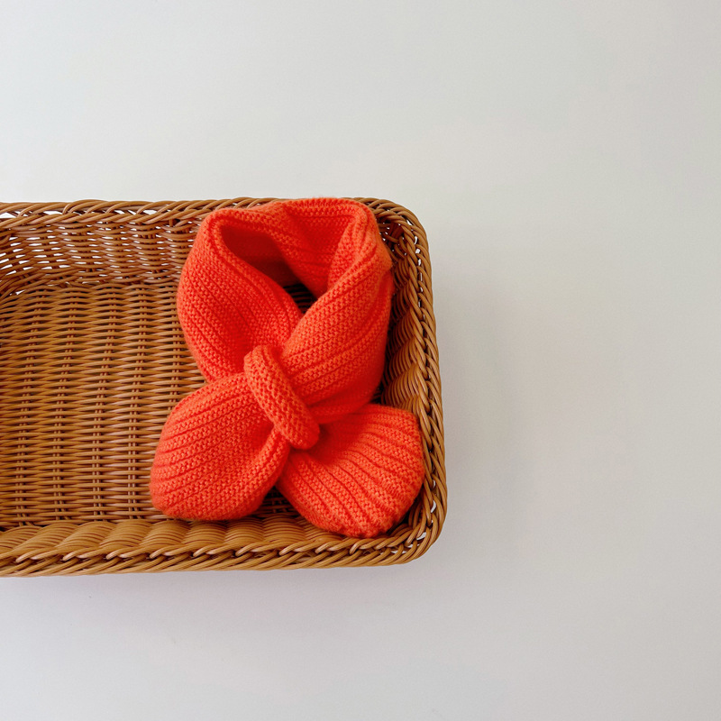 스타일 심플 크로스 오버 어린이 울 스카프 한국 피부 친화적 인 단색 소년과 소녀의 아기 니트 스카프