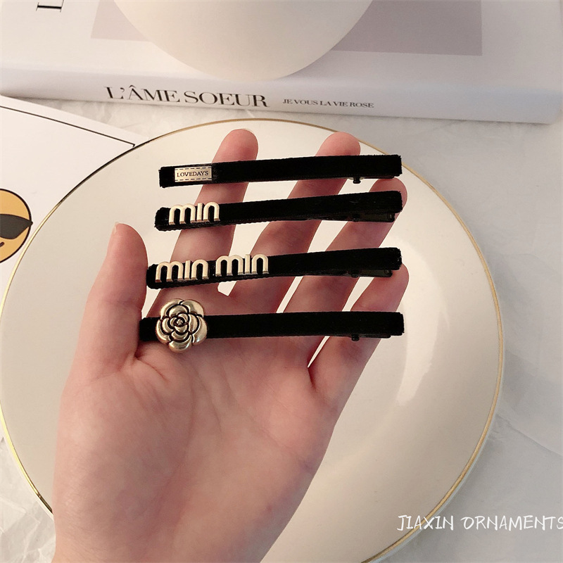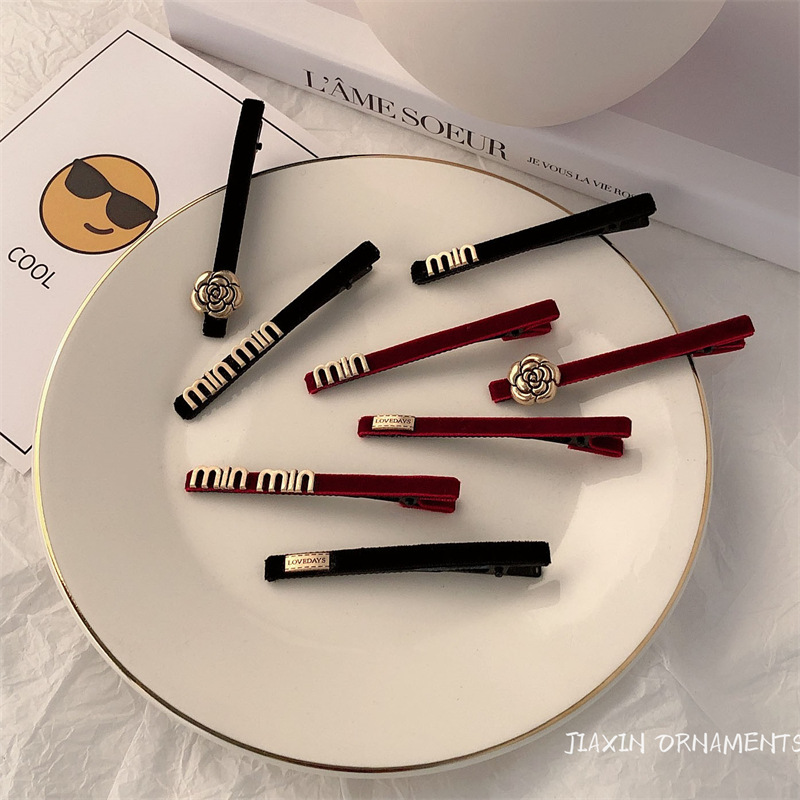 빈티지 편지 인터넷 레드 스타일 작은 머리핀 사이드 클립 고급 느낌 우아한 앞머리 클립 깨진 머리핀 여성용 헤어 액세서리