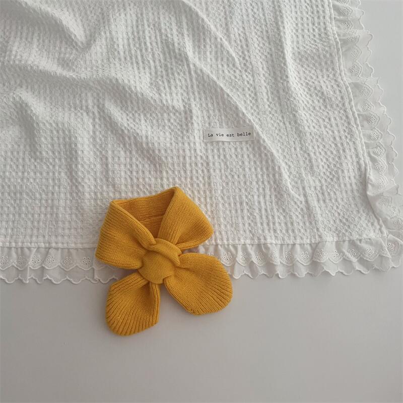 한국 스타일 어린이 단색 니트 크로스 작은 스카프 가을과 겨울 아기의 부드럽고 따뜻한 오목한 스타일 울 스카프