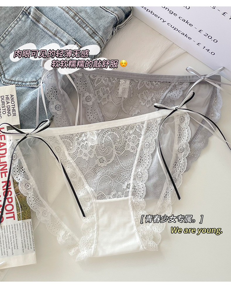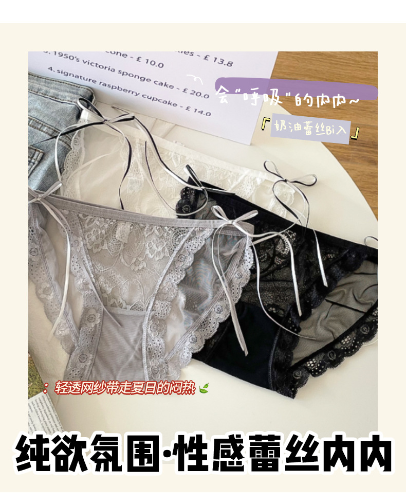 프랑스 스타일 하이 슬릿 여성 속옷 여성용 여름 얇은 미드 로우 웨이스트 메쉬 섹시한 레이스 순수한 욕망 스타일 삼각형 반바지스토어 가기