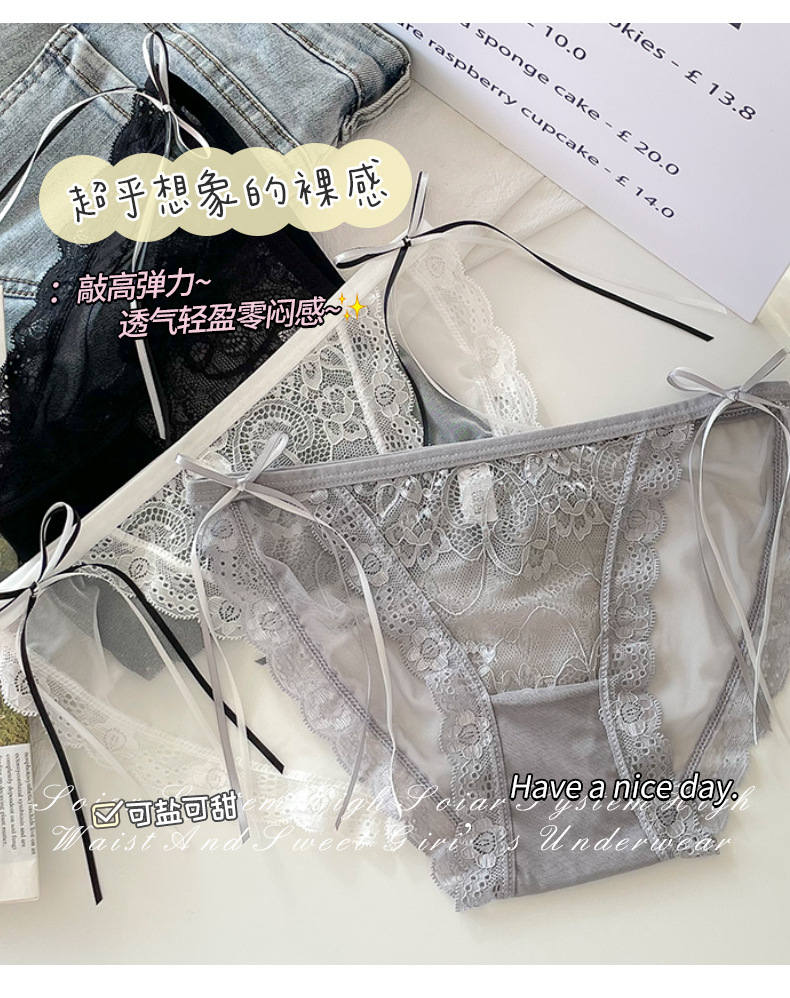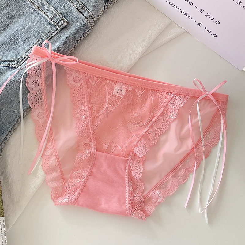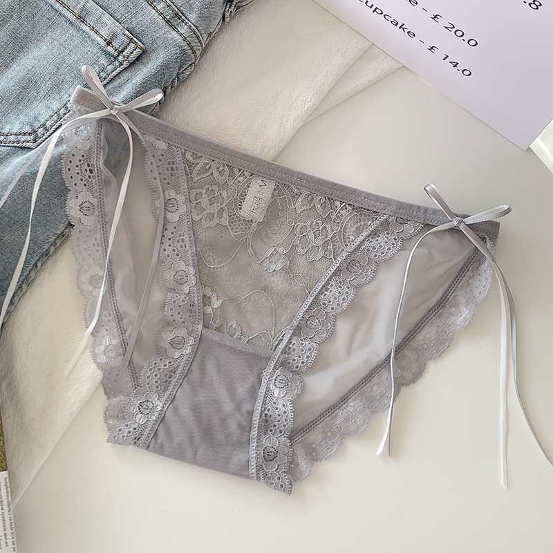 프랑스 스타일 하이 슬릿 여성 속옷 여성용 여름 얇은 미드 로우 웨이스트 메쉬 섹시한 레이스 순수한 욕망 스타일 삼각형 반바지