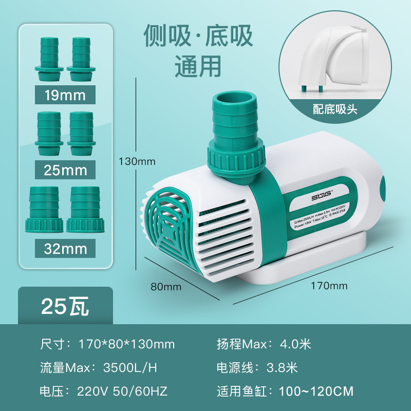 SQG 어항 순환 수중 펌프 소형 가변 주파수 저소음 가정용 어항 및 인공산 펌프 필터링 및 물 교환용 저흡입 펌프스토어 가기