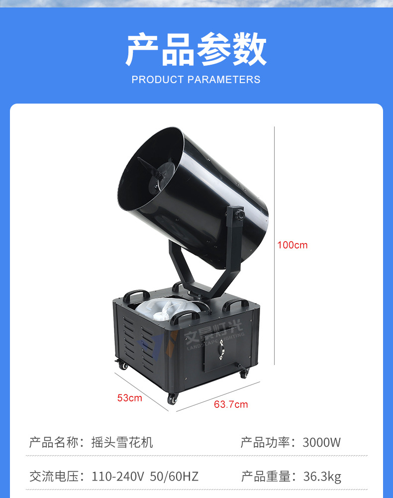 • 3000w 쉐이킹 헤드 눈송이 기계 [비행 케이스 포장] 무료 5L 눈송이 오일 2통