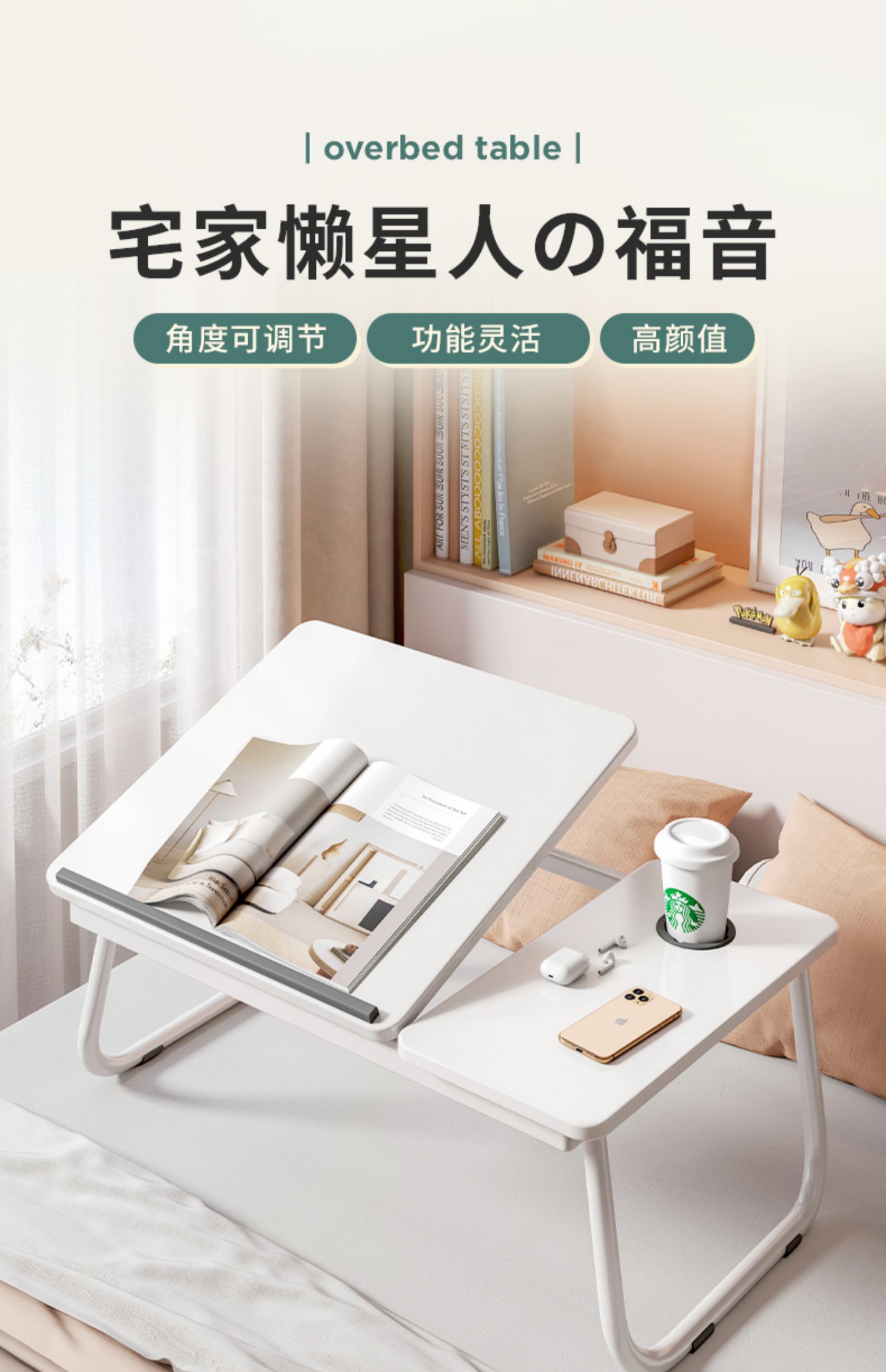 • ★☆[5단계 높이조절 + 반뒤집기 + 미끄럼방지 레일 + 컵홀더] 웜화이트 60*40*28★☆