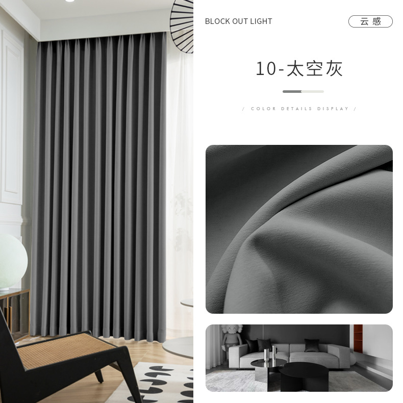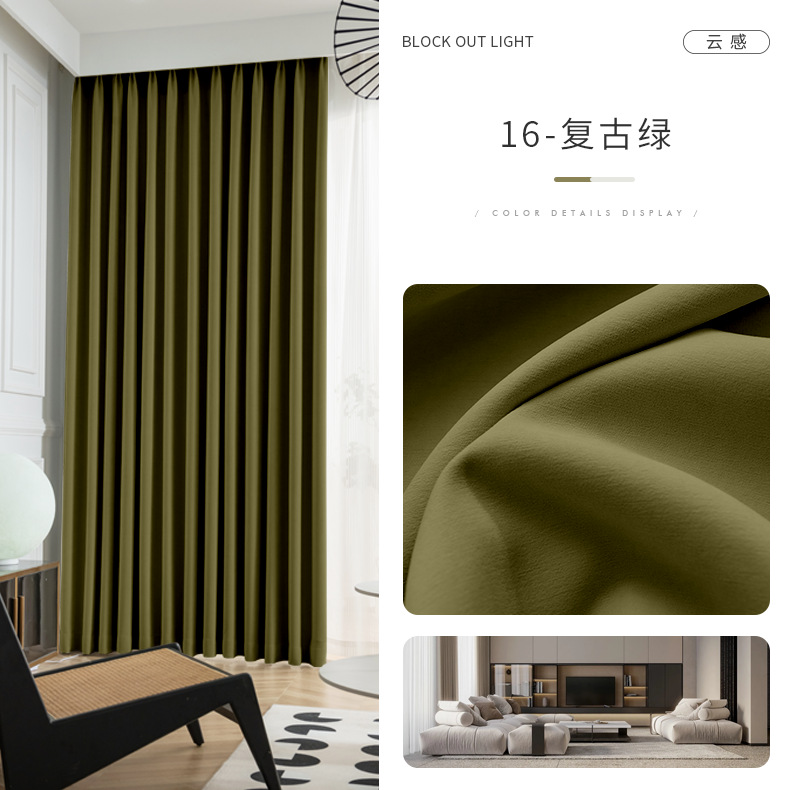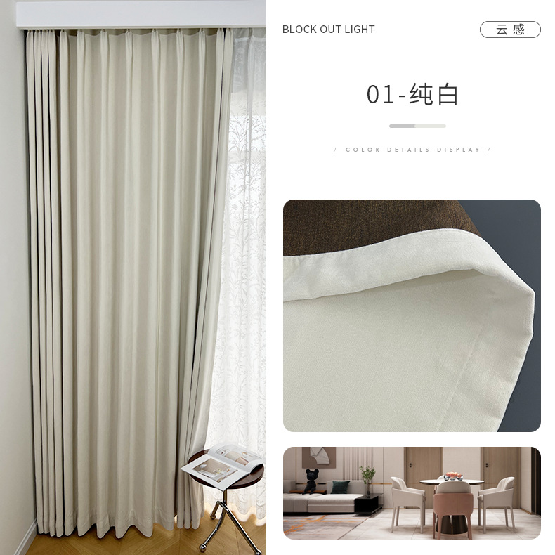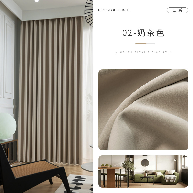 프랑스 우유 차 색상 전체 음영 셔닐 커튼 in 바람 거실 침실 구름 벨벳 커튼 도매 완료