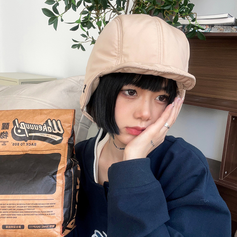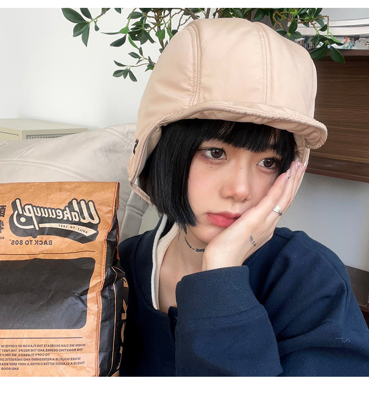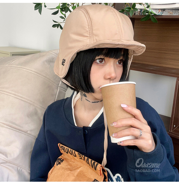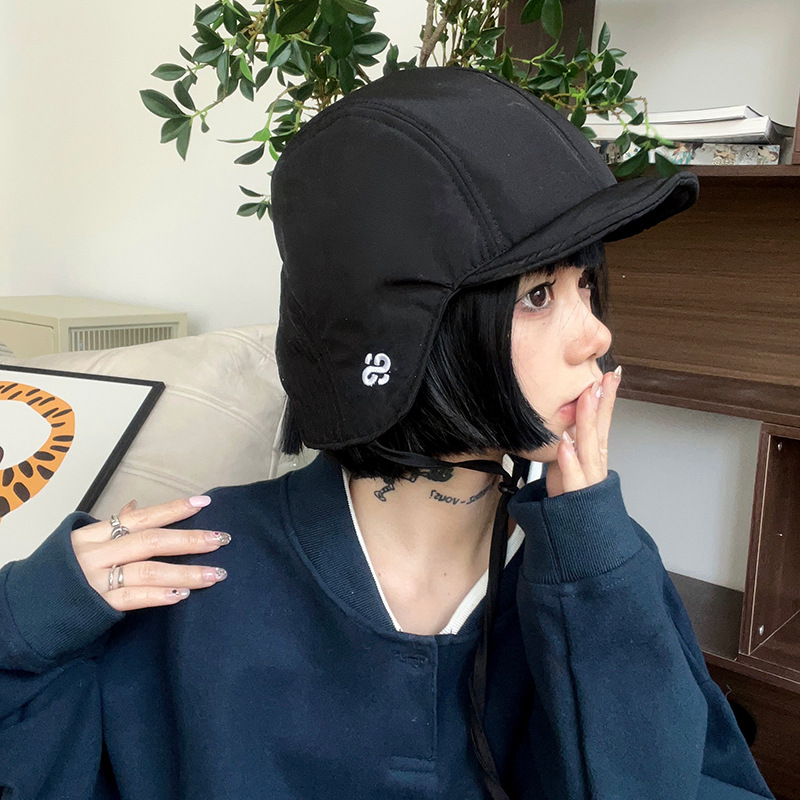 한국식 가을과 겨울 따뜻한 자수 양면 Lei Feng Hat 여성용 방한 사이클링 크로스 보더 파일럿 모자 귀 보호 모자 남성과 여성을위한스토어 가기