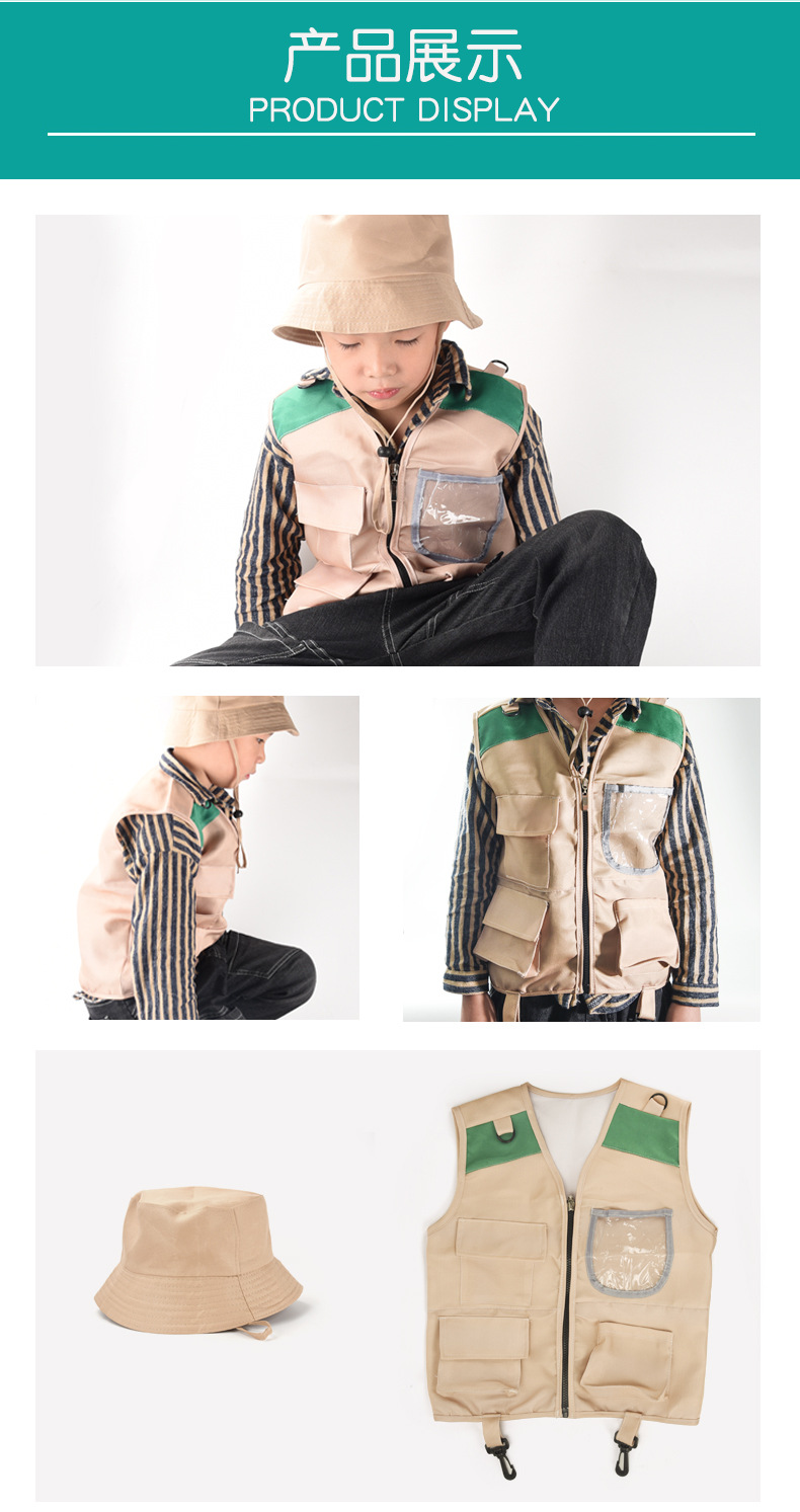 어린이 야외 모험 의류 조끼 모자 모험가 역할 놀이 무대 축제 공연 코스프레 세트