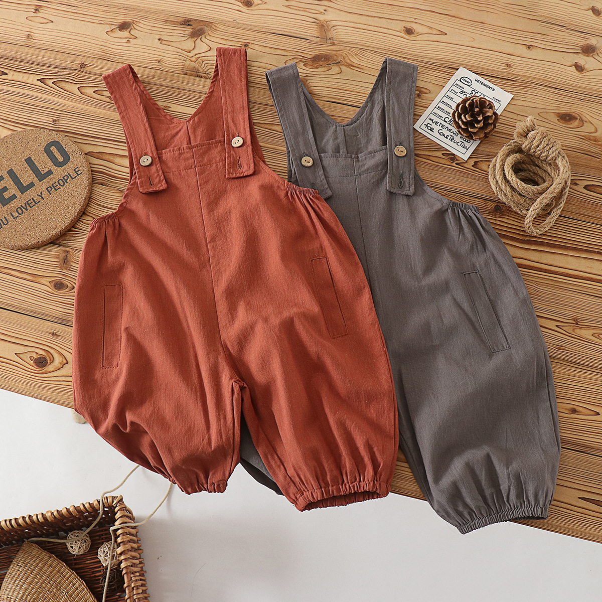 모리 레트로 ~ 아기 멜빵 한국 문학 얇은면 멜빵 7 바지 남녀 보물 여름 바지 조수
