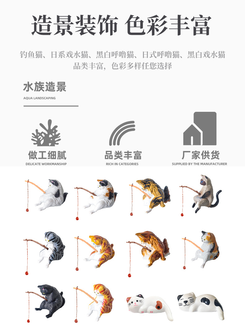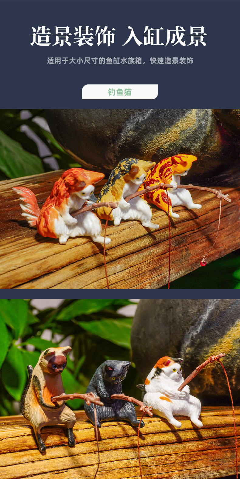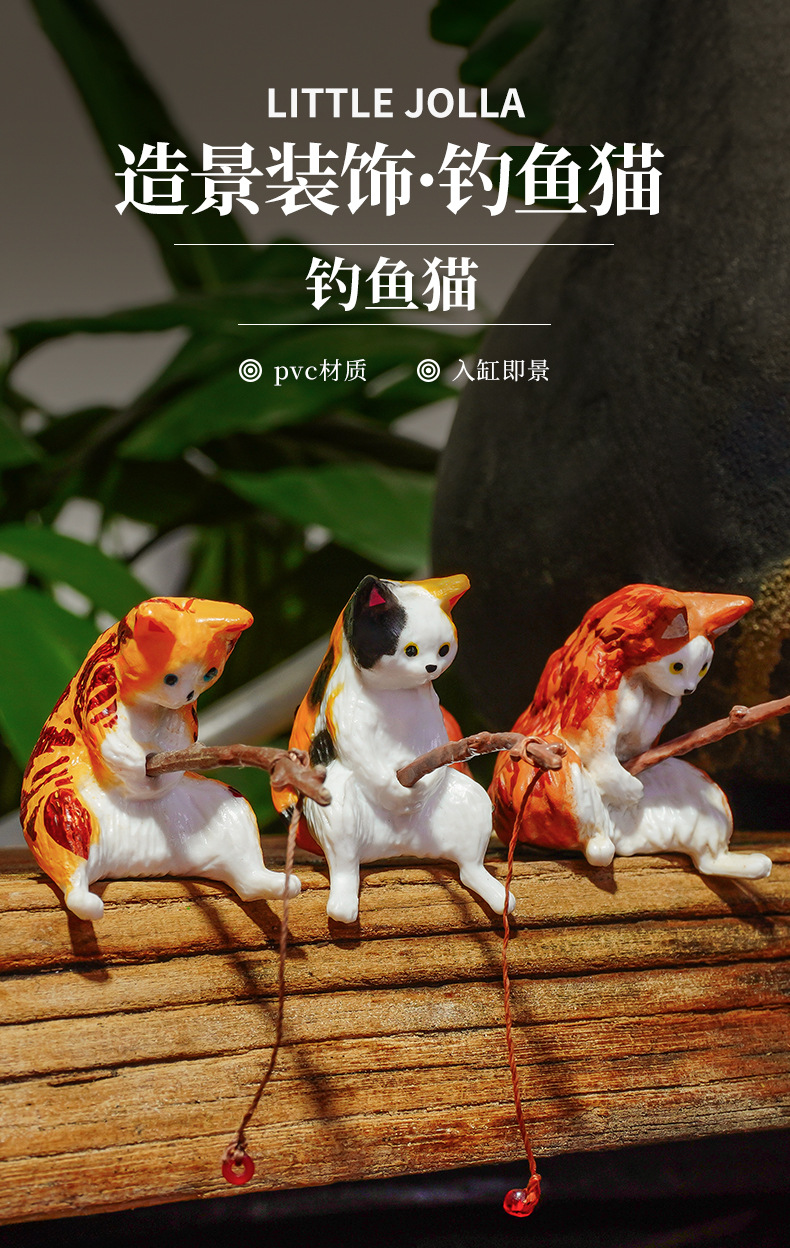 인기있는 낚시 고양이 장식품 물고기 탱크 조경 고양이 인터넷 연예인 데스크탑 거실 레저 낚시 새끼 고양이 도매
