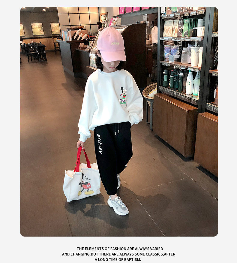 아동복 여아 스웨트셔츠 2025 봄 가을 신상 중대형 아동용 루즈핏 만화 캐릭터 귀여운 무지개무늬 후드 없는 스웨트셔츠