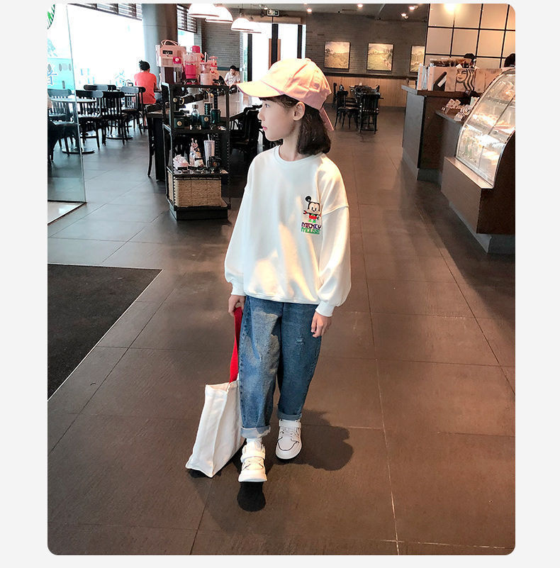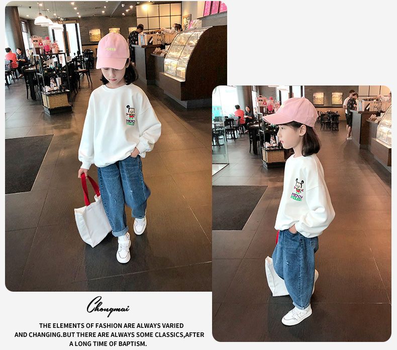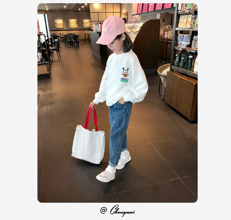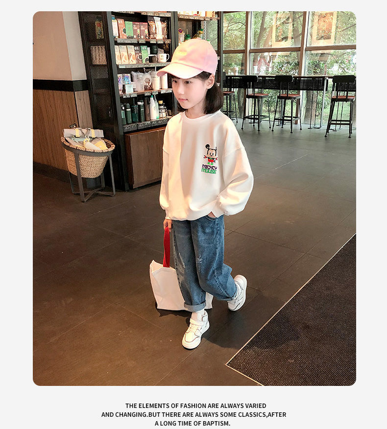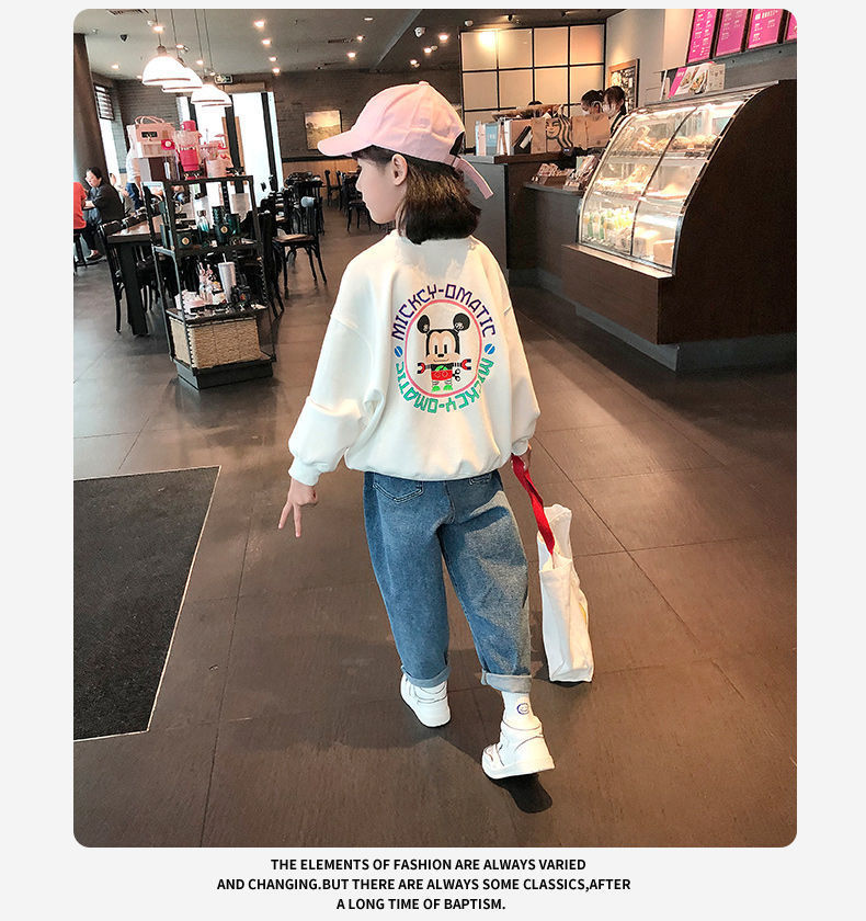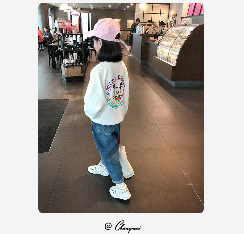 아동복 여아 스웨트셔츠 2025 봄 가을 신상 중대형 아동용 루즈핏 만화 캐릭터 귀여운 무지개무늬 후드 없는 스웨트셔츠스토어 가기