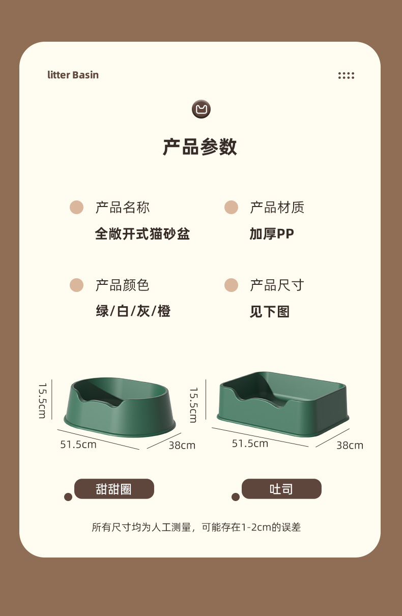 新爆款猫咪宠物清洁用品全敞开式猫砂盆猫窝大号防外溅猫厕所