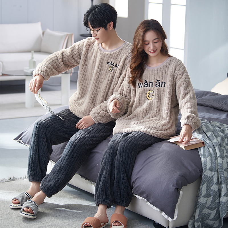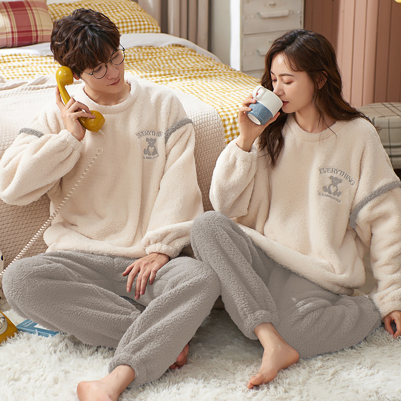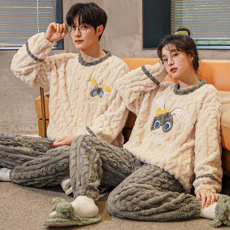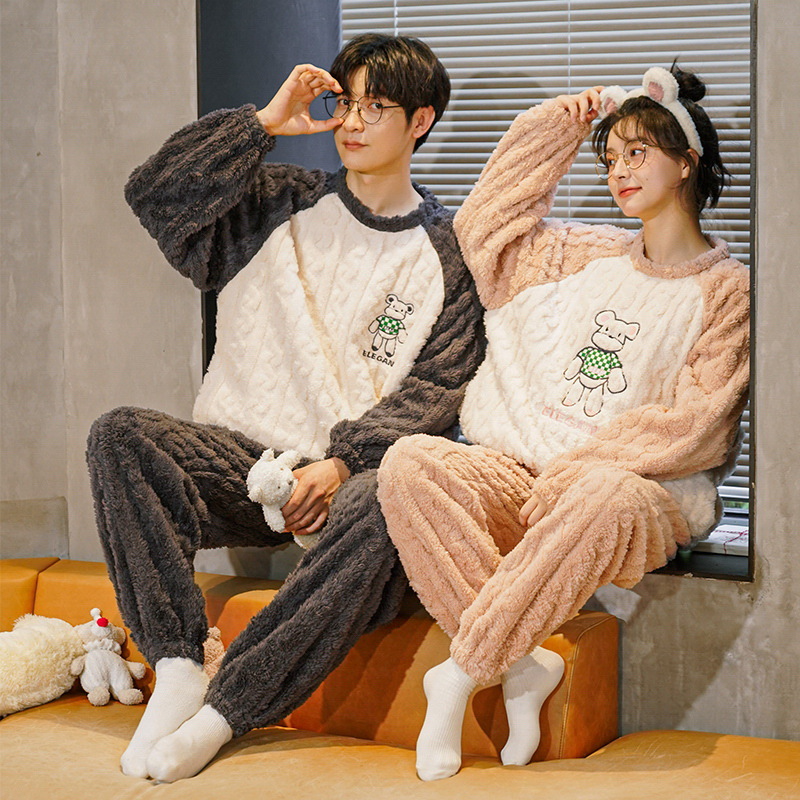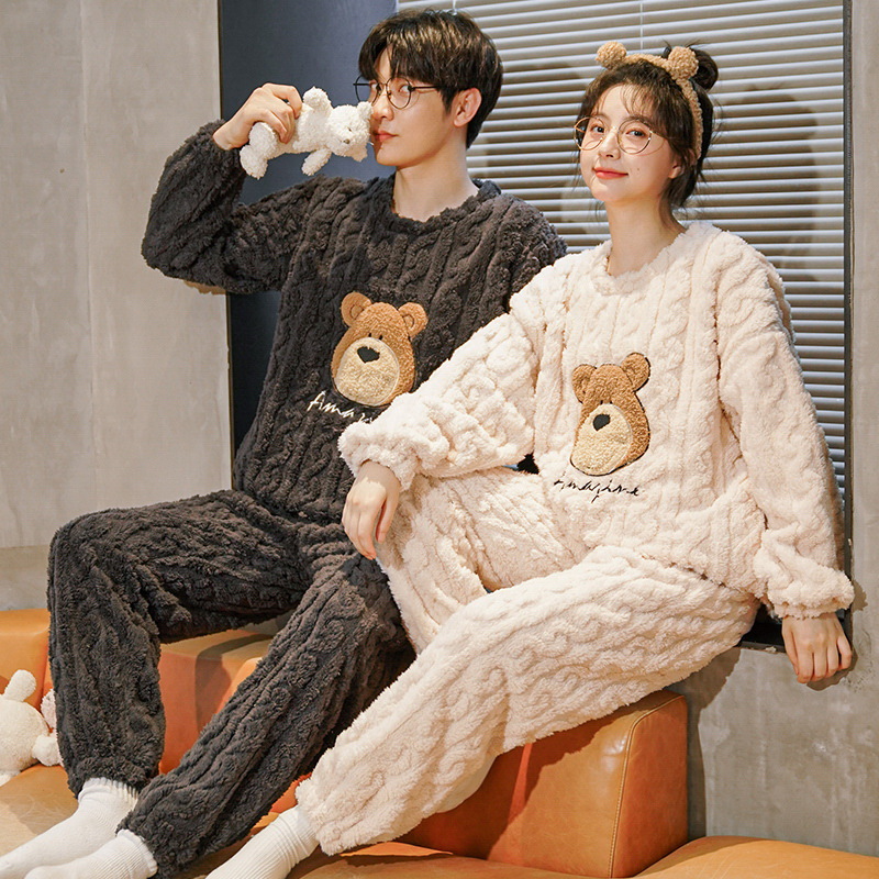커플의 잠옷 긴 소매 산호 양털 가을과 겨울 여자의 귀여운 만화 남자의 플란넬 플러스 사이즈 느슨한 가정 옷스토어 가기