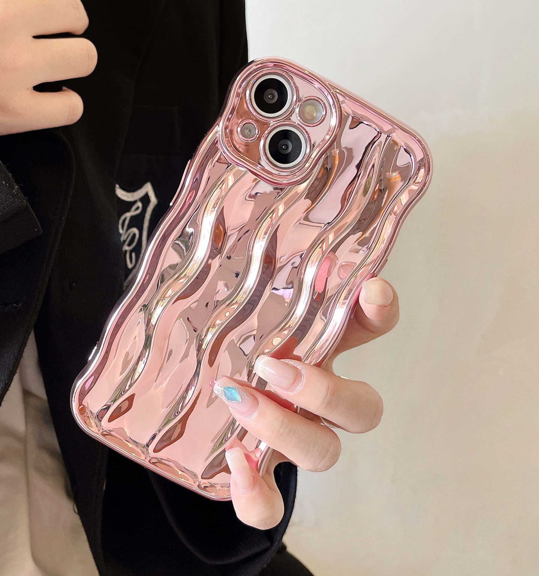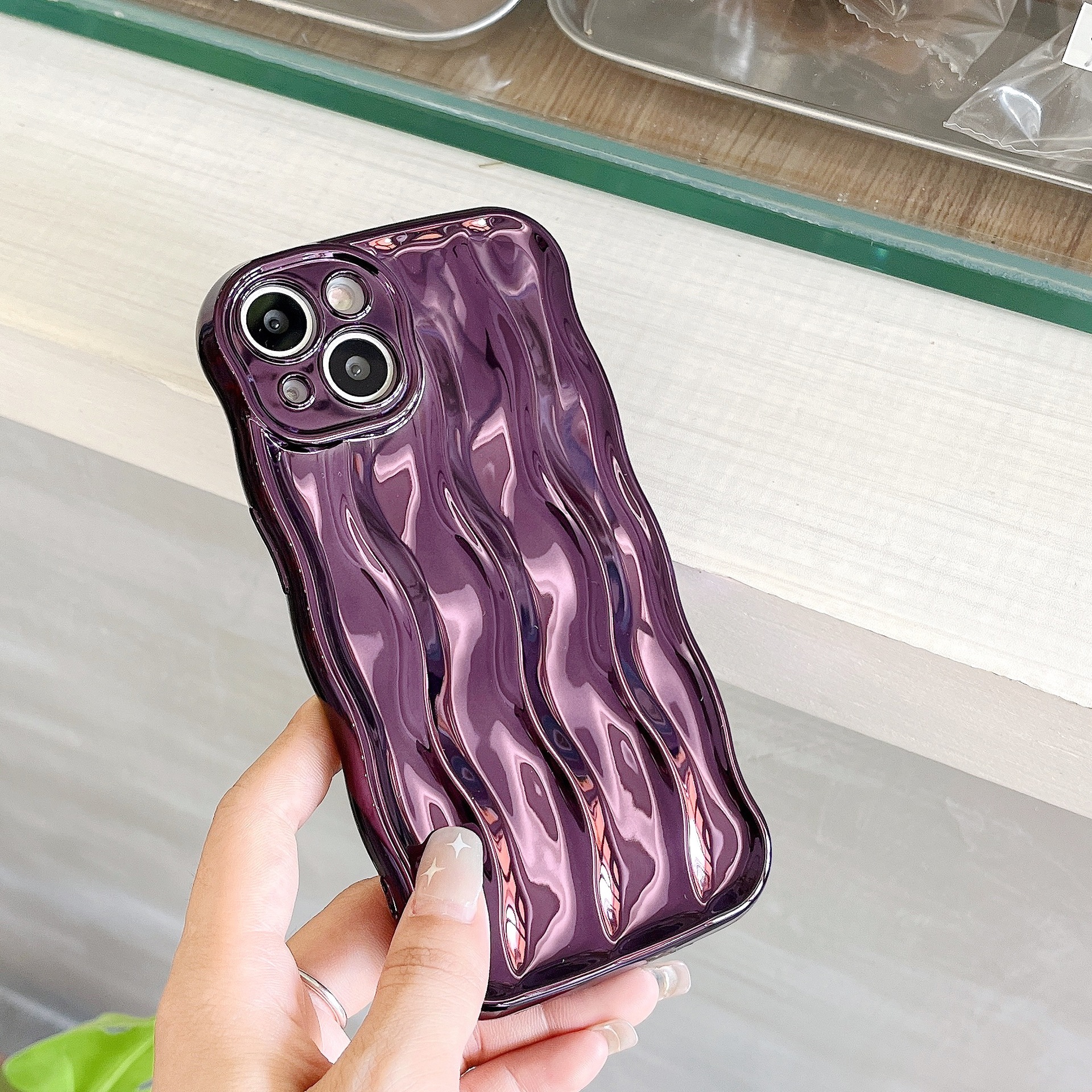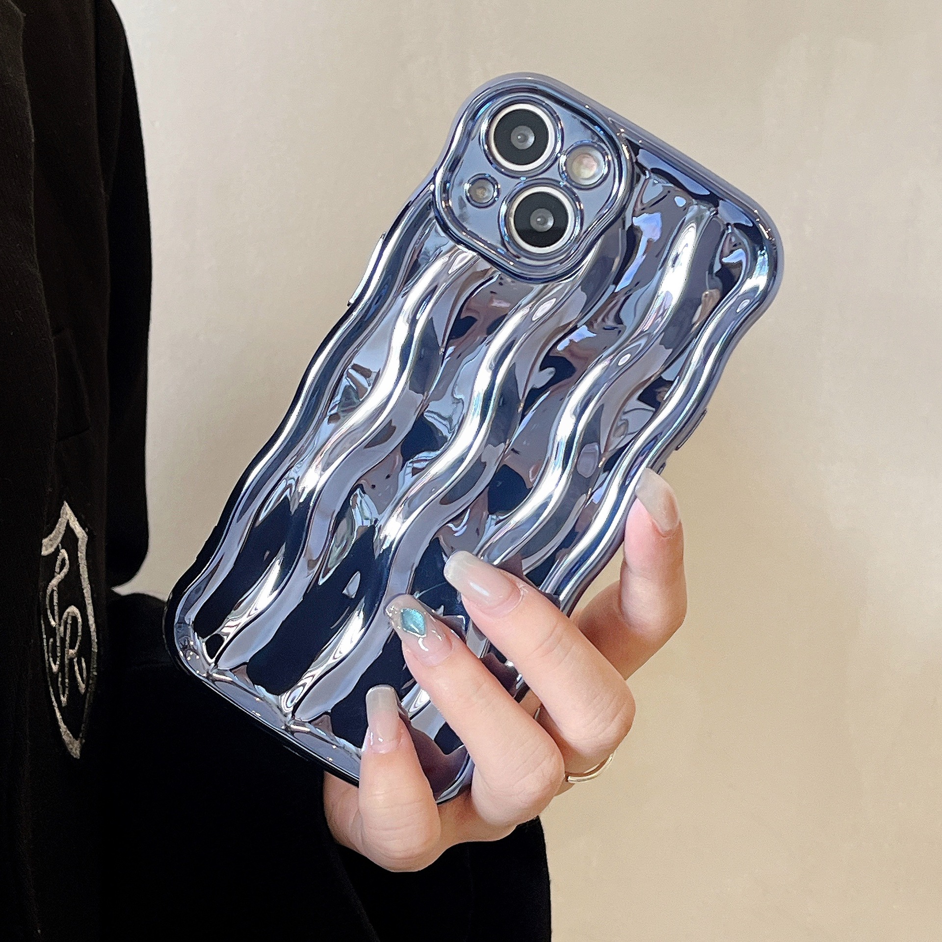 전기도금된 은 물결무늬 아이폰14프로맥스 휴대폰 케이스 애플16 신형 14/13 독특한 스타일 15스토어 가기