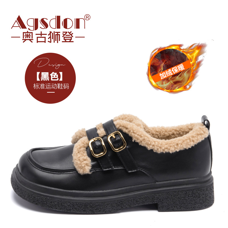 Augustonen 영국 스타일 로퍼 여성용 2023 새로운 거친 굽 가죽 신발 겨울 기모 레트로 트렌디 싱글 레이어 신발스토어 가기
