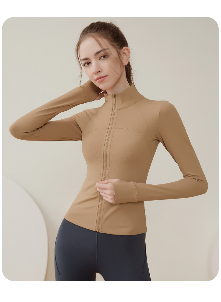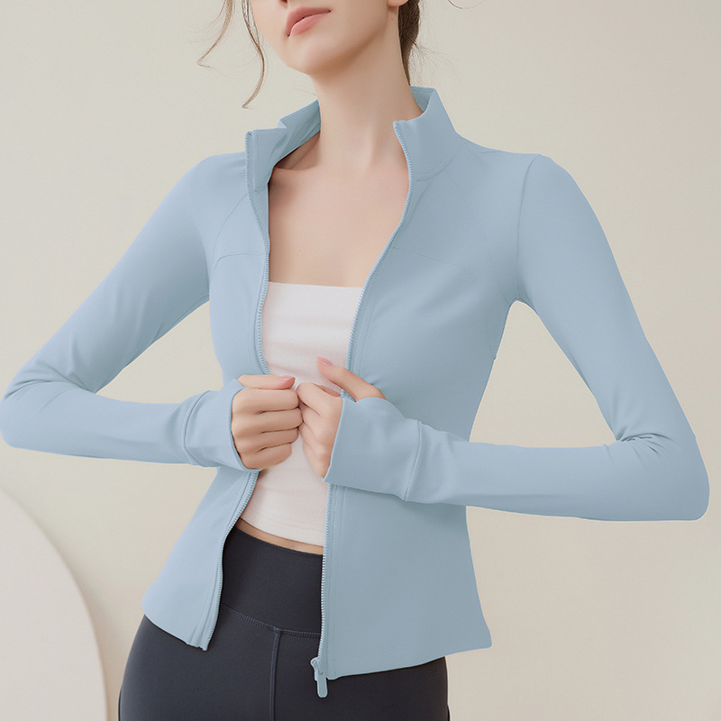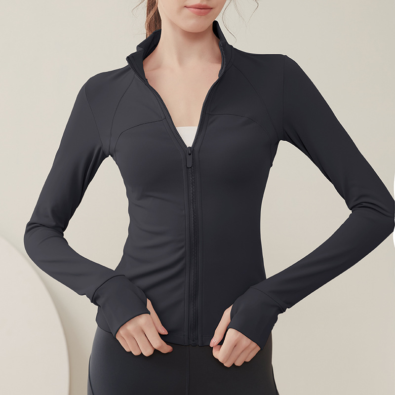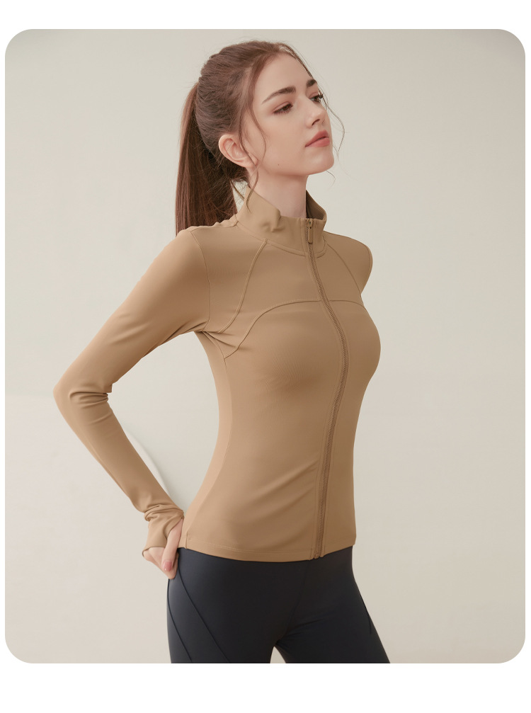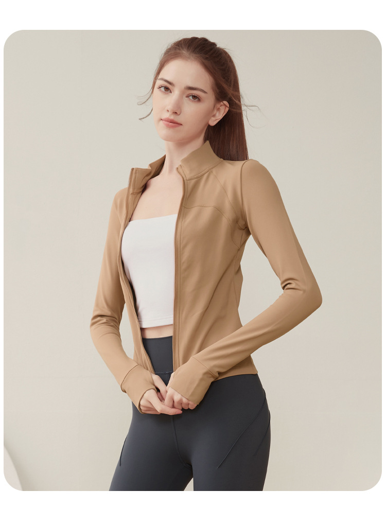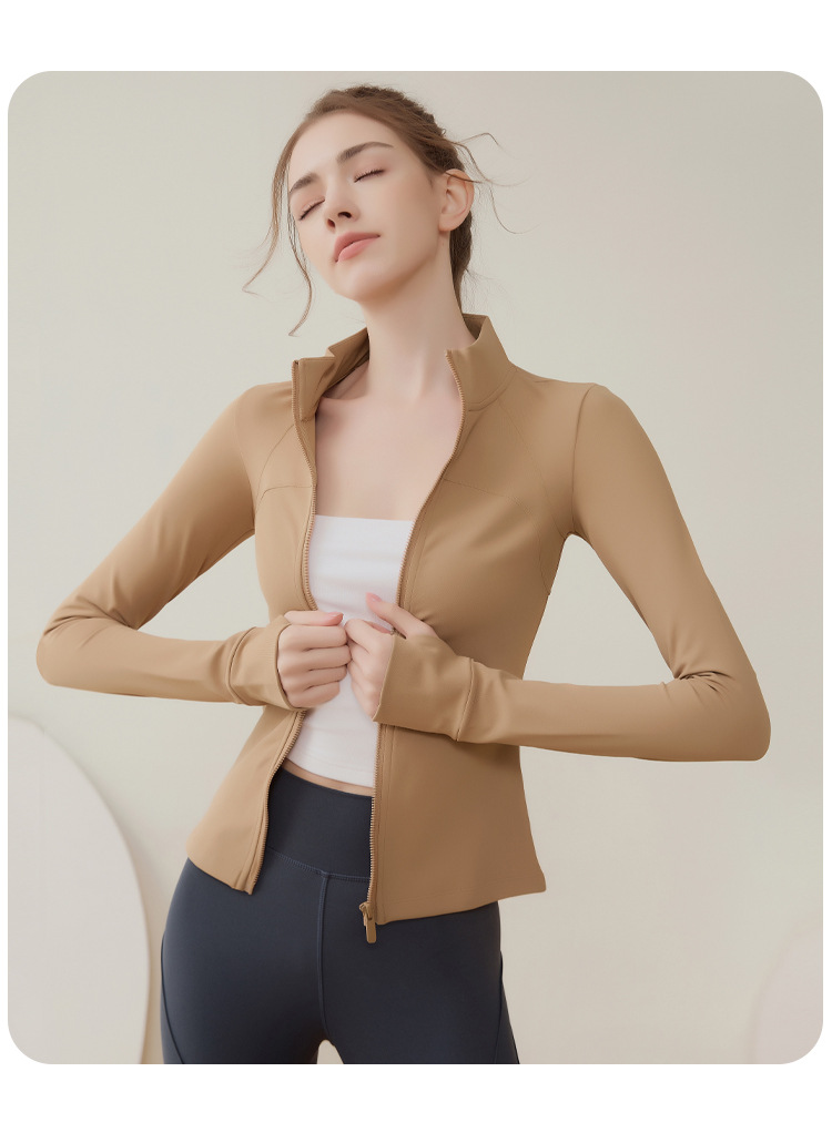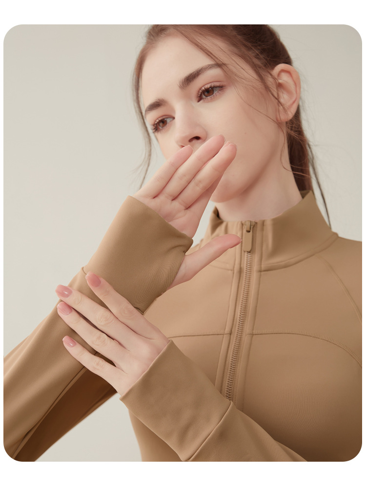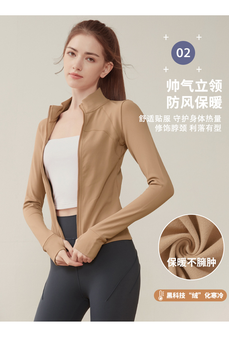 크로스 보더 칼라 기모 스포츠 코트 여자의 긴 소매 피트니스 세트 가을과 겨울 야외 전문 아침 실행 요가 세트 탑스토어 가기