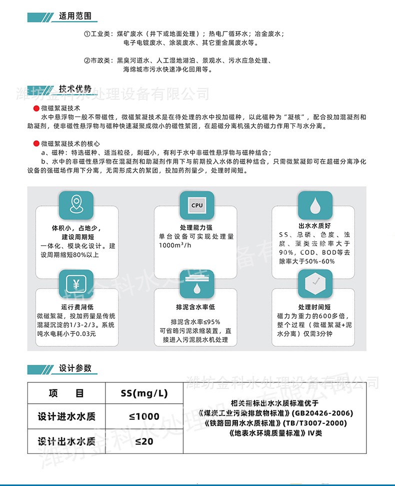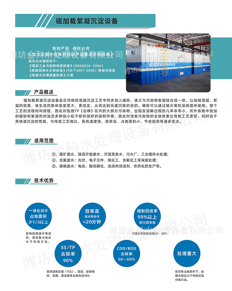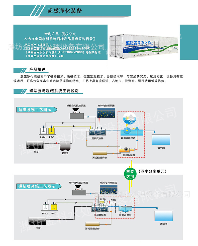 무거운 중간 자기 부하 하수 처리 장비 자기 응집 침강 분리 장비 슈퍼 자기 분리기 대용량스토어 가기