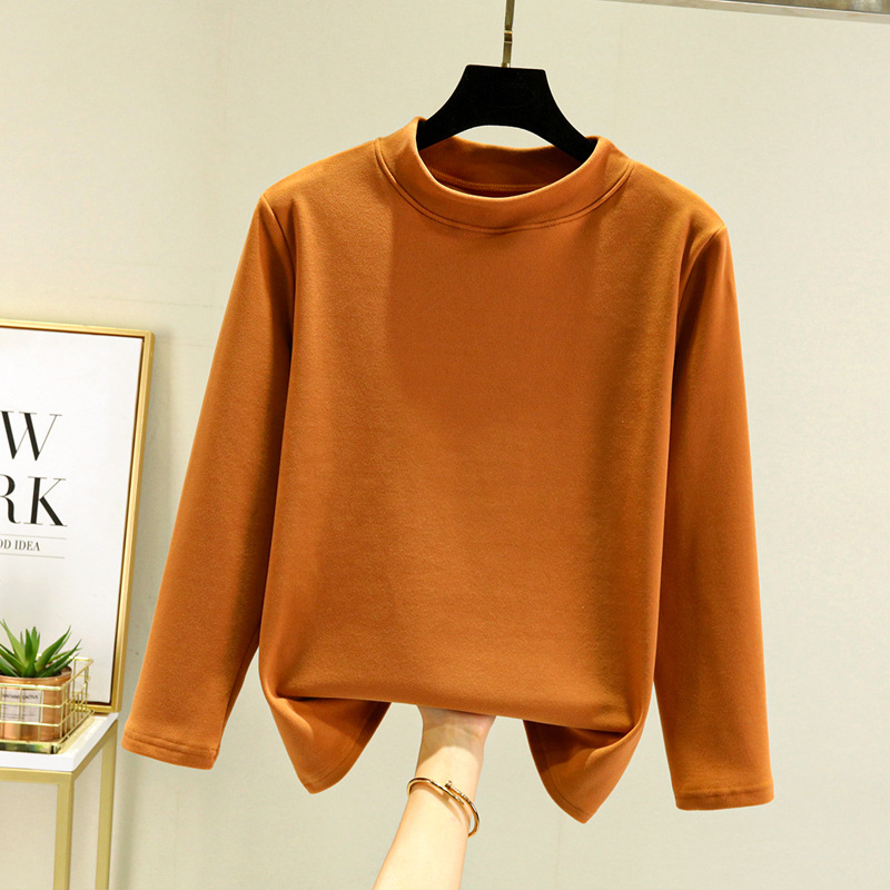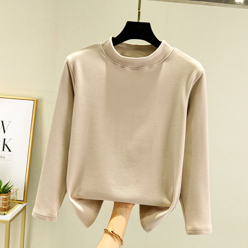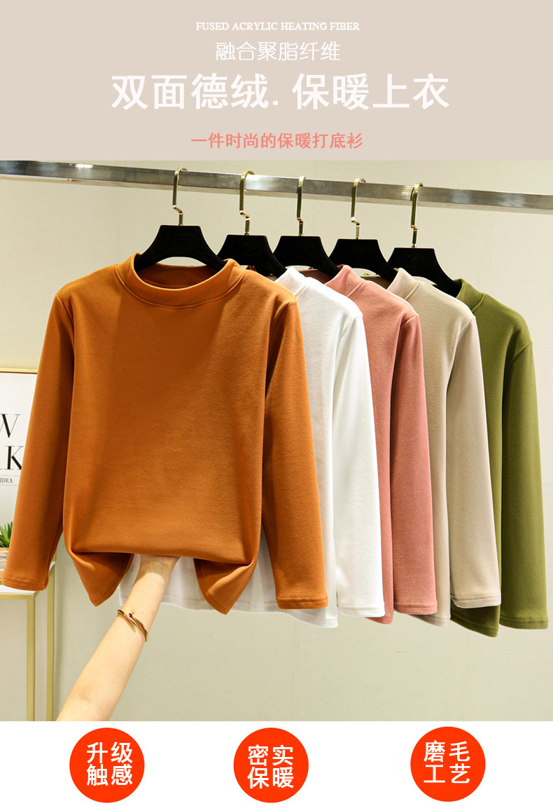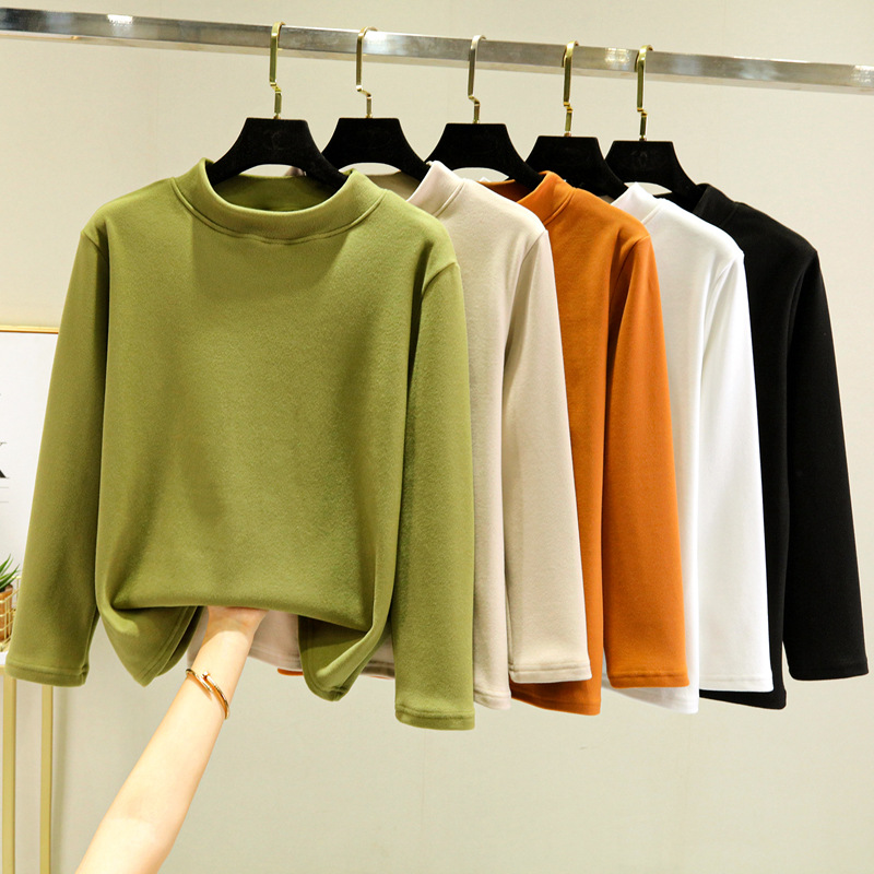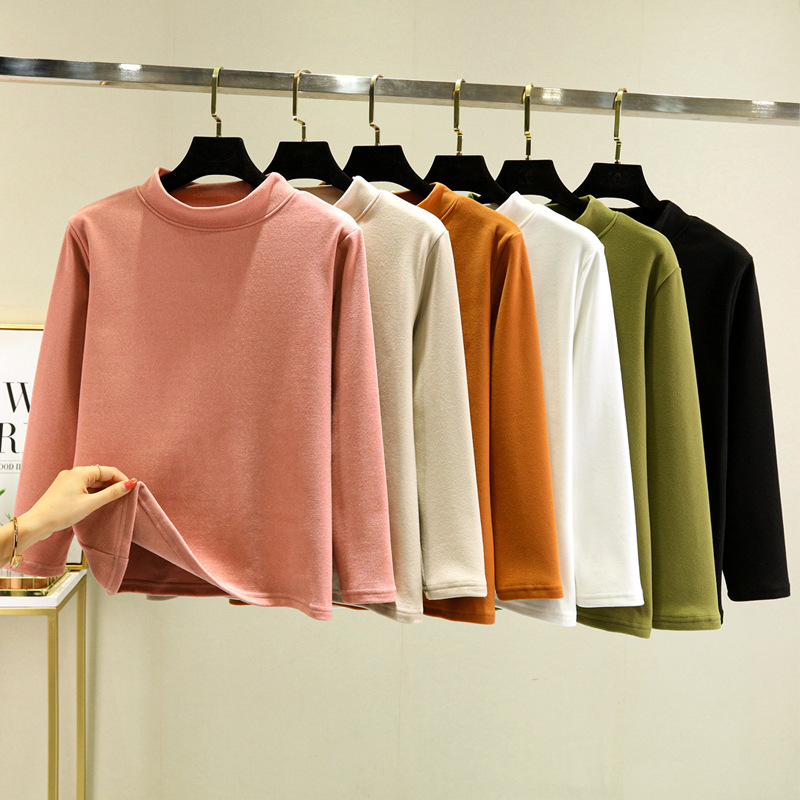 여성의 긴팔 따뜻한 옷 가을과 겨울 하프 라운드 넥 베이스 셔츠 뜨거운 기모 두꺼운 내부 슬림 핏 가을 옷스토어 가기