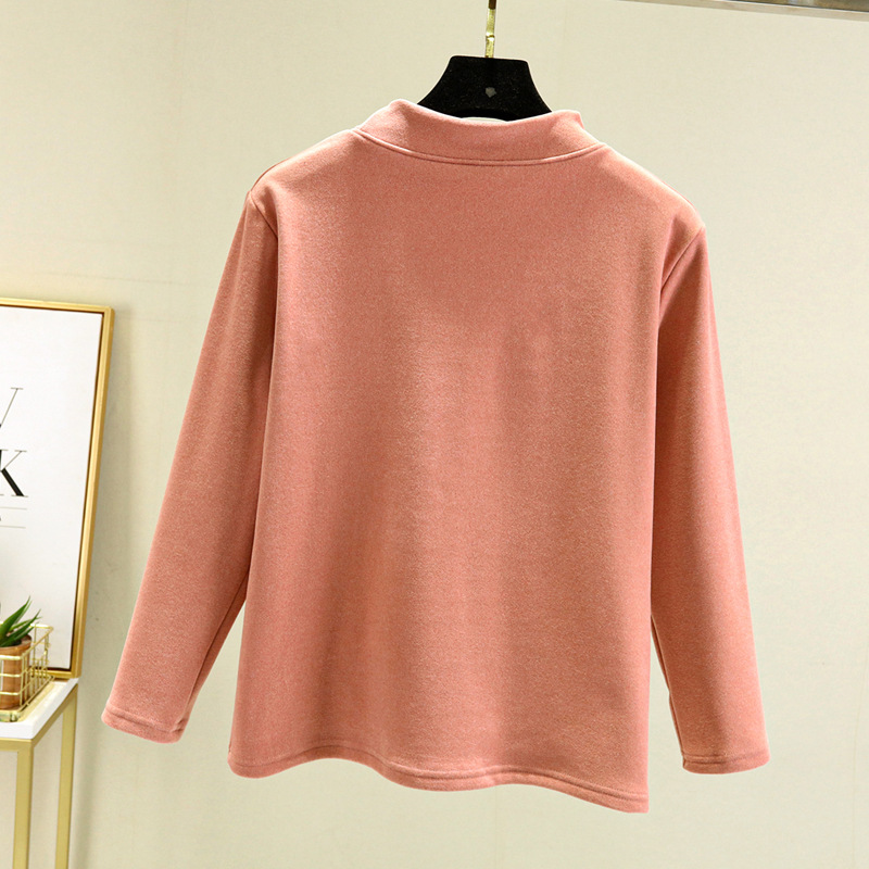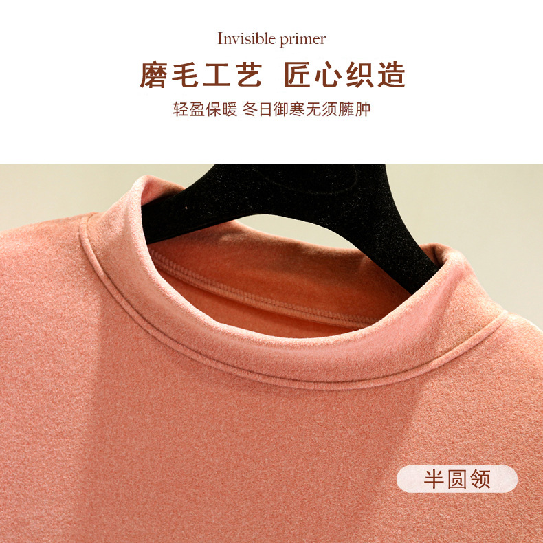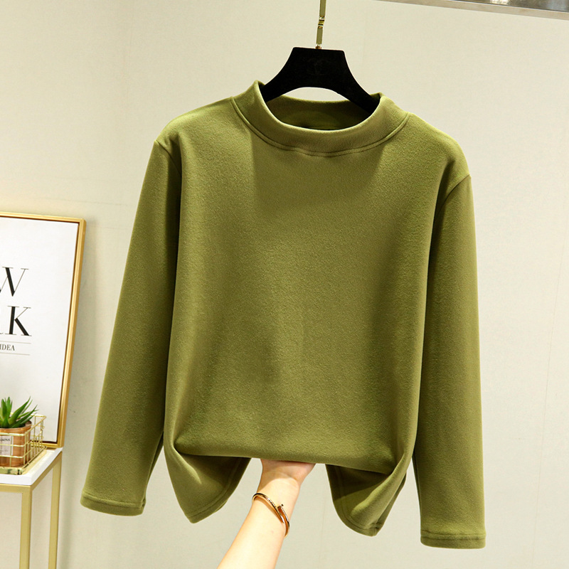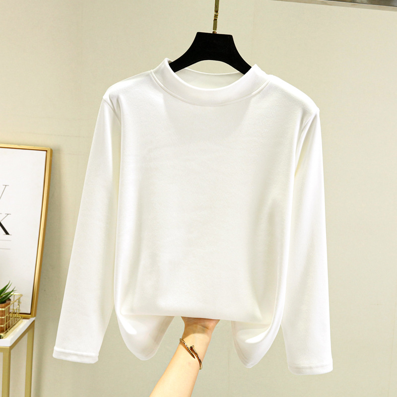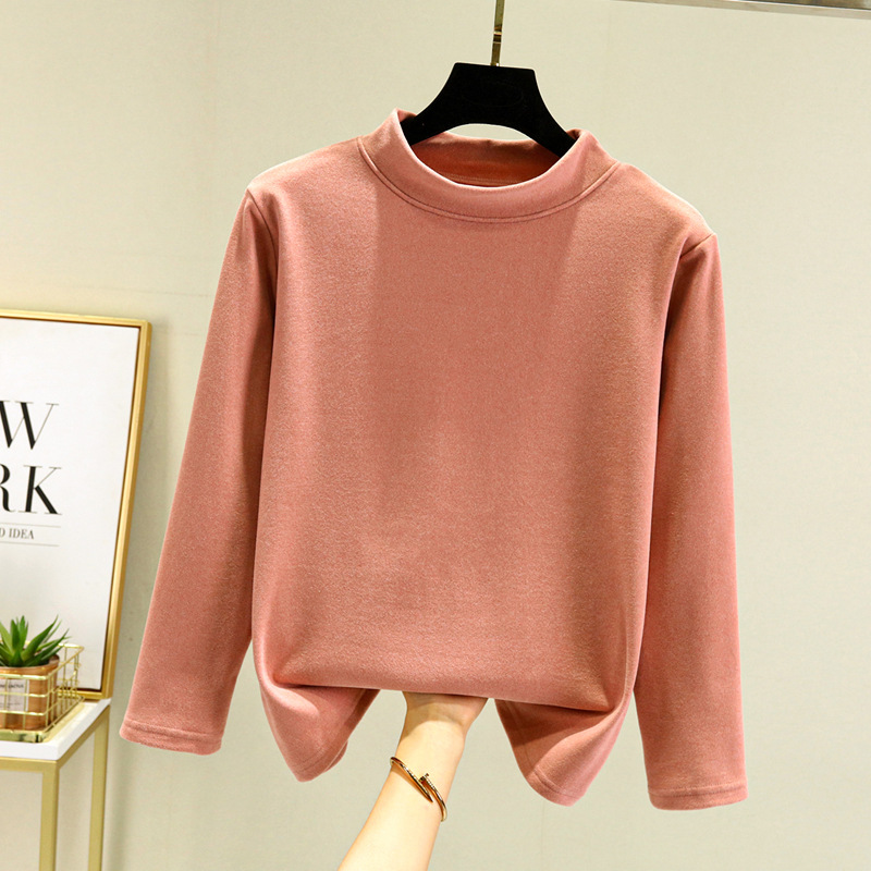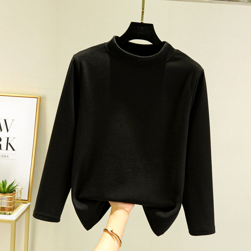 여성의 긴팔 따뜻한 옷 가을과 겨울 하프 라운드 넥 베이스 셔츠 뜨거운 기모 두꺼운 내부 슬림 핏 가을 옷스토어 가기