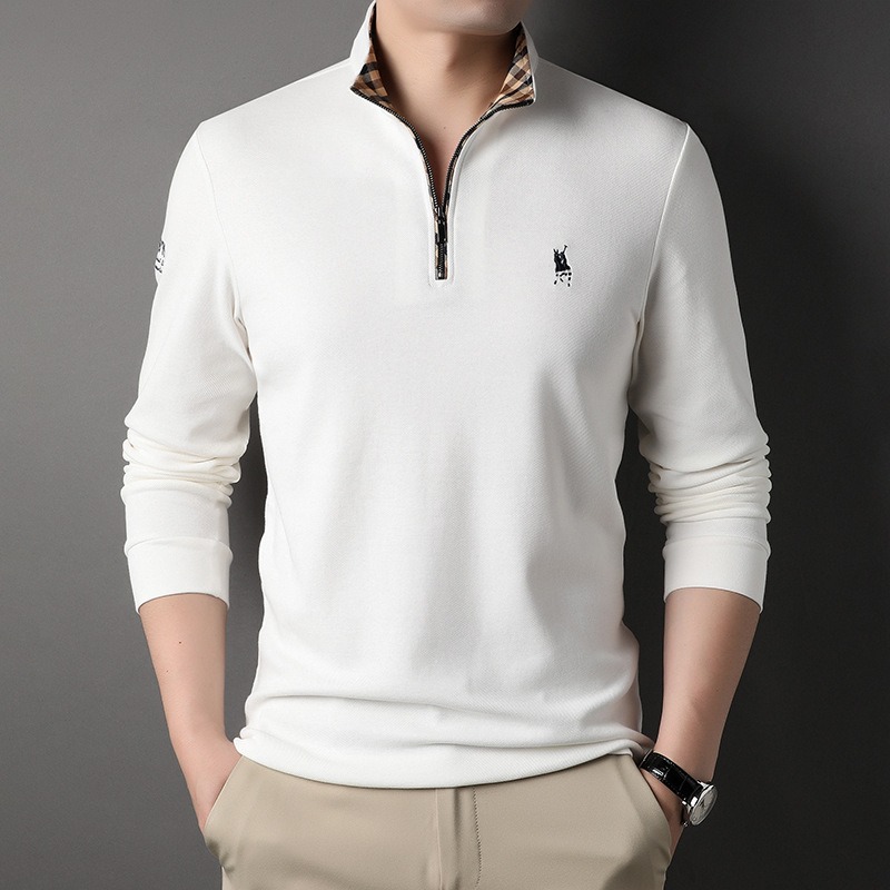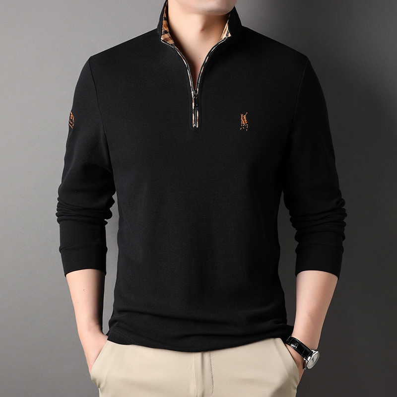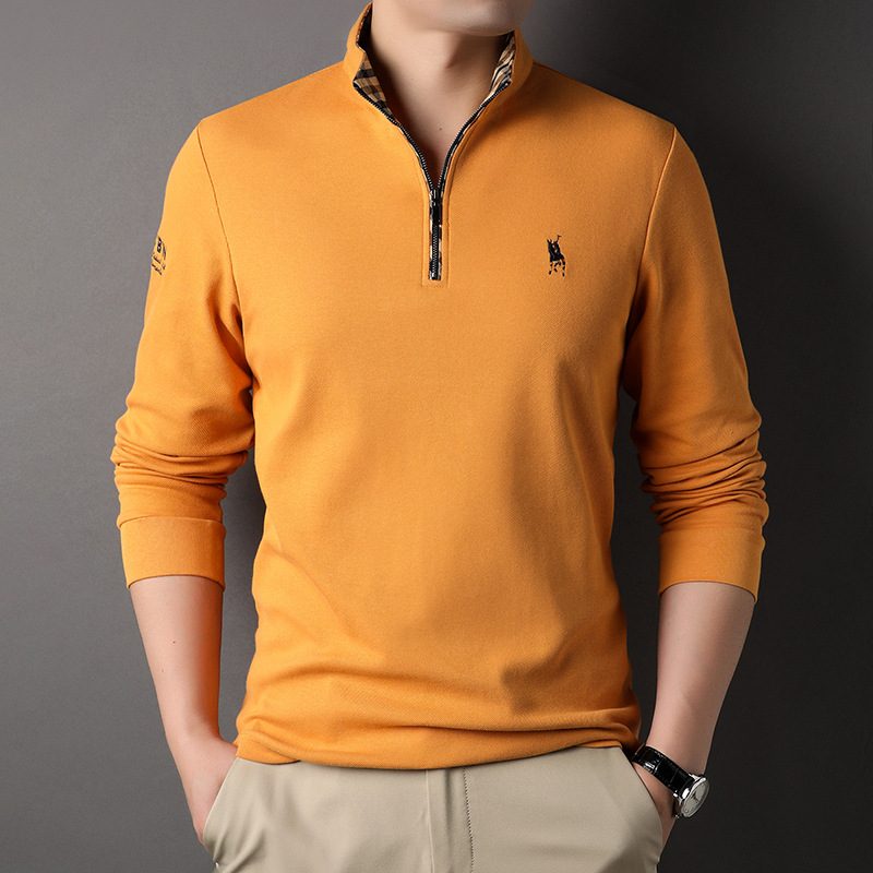 가을 새 남성용 하프 풀 티셔츠 2022 중년 단색 긴팔 스탠드 칼라 캐주얼 패션 트렌드 한국식 헤어