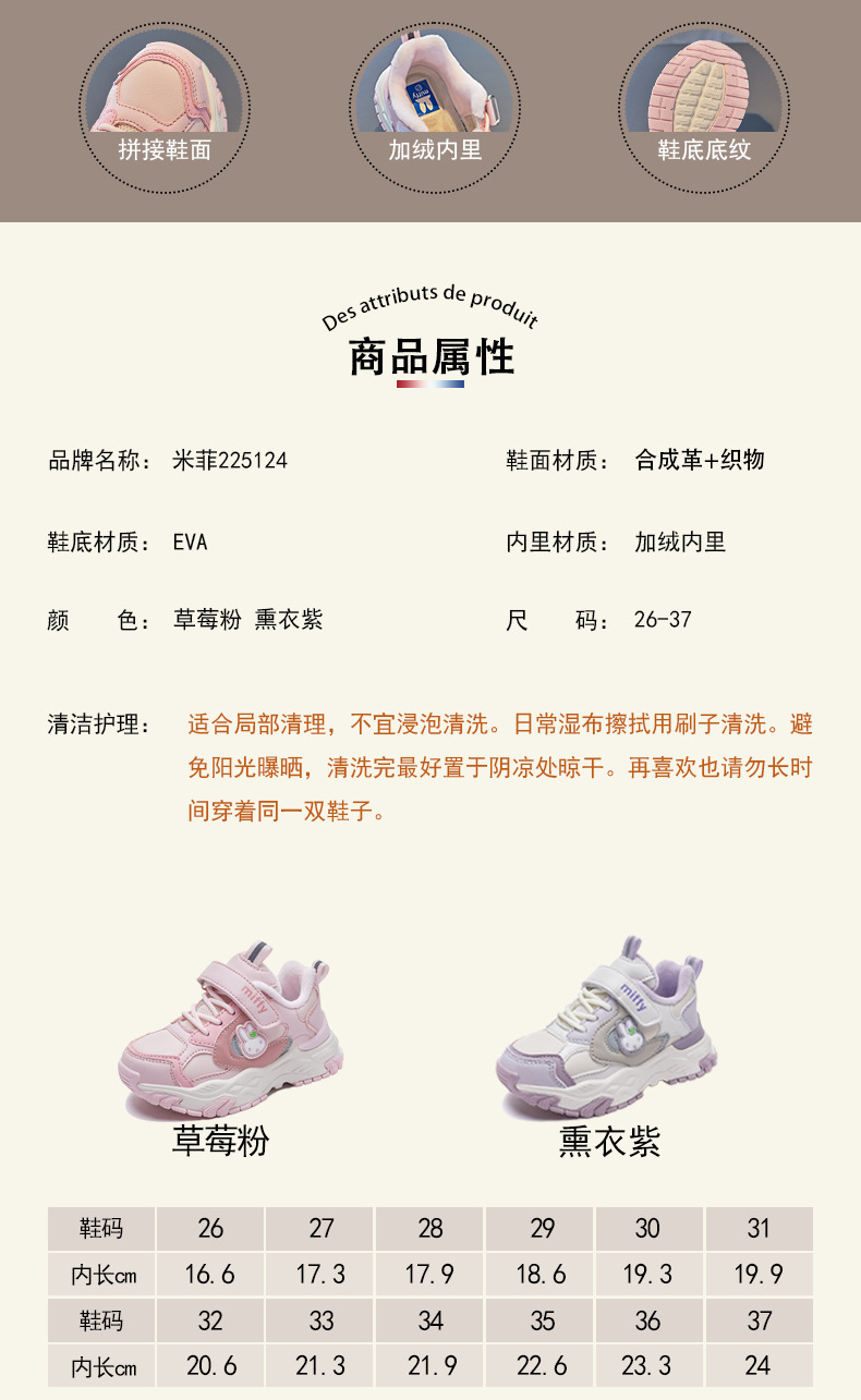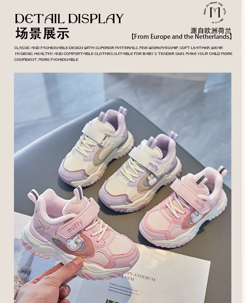 [공식 정품] 여성 신발 아동 운동화 2022 겨울 새로운 여성 베이비 카와이 기모 패션 투 코튼