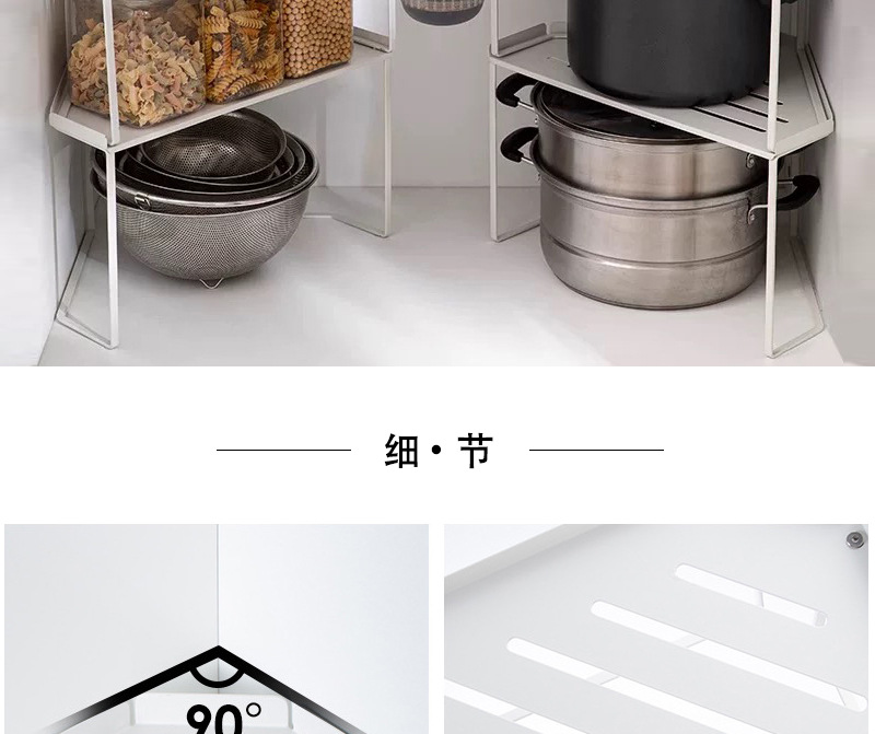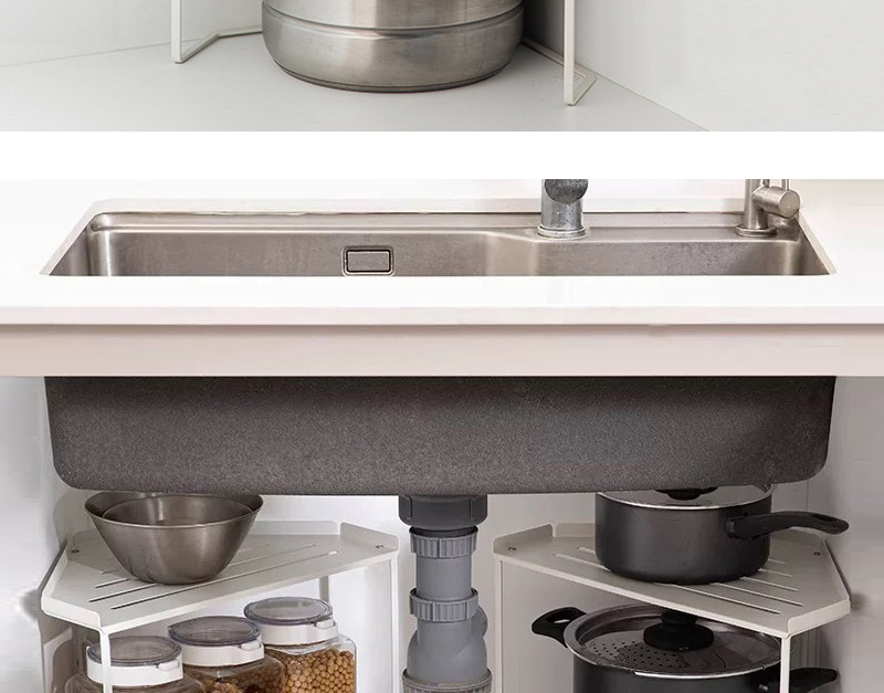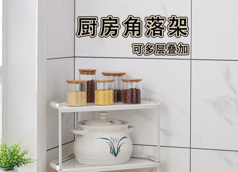 싱글 레이어 쌓을 수 있는 코너 수납 선반 홈 조리대 삼각대 싱크대 아래 다기능 조미료 랙 냄비 수납스토어 가기
