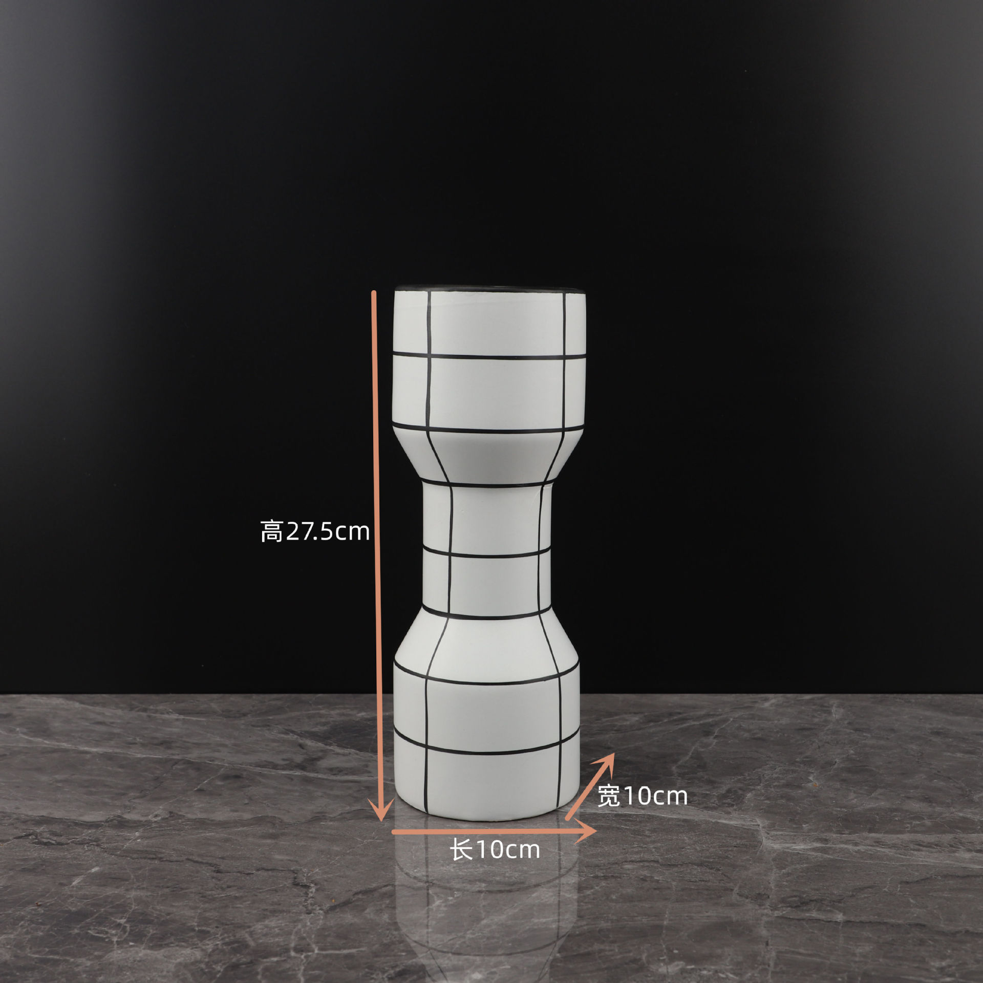 북유럽 간단한 창조적 인 흑백 줄무늬 세라믹 꽃 도자기 거실 입구 연구 커피 테이블 침실 식당 홈 장식