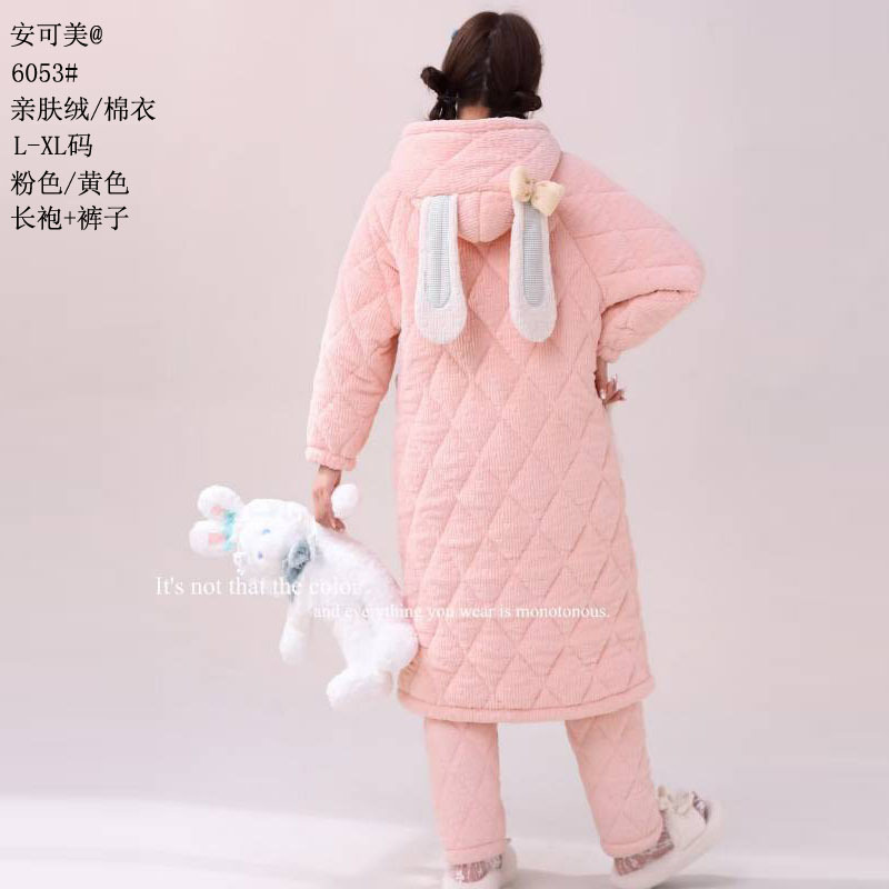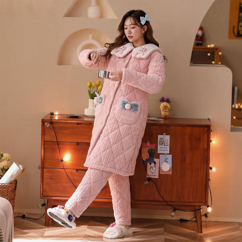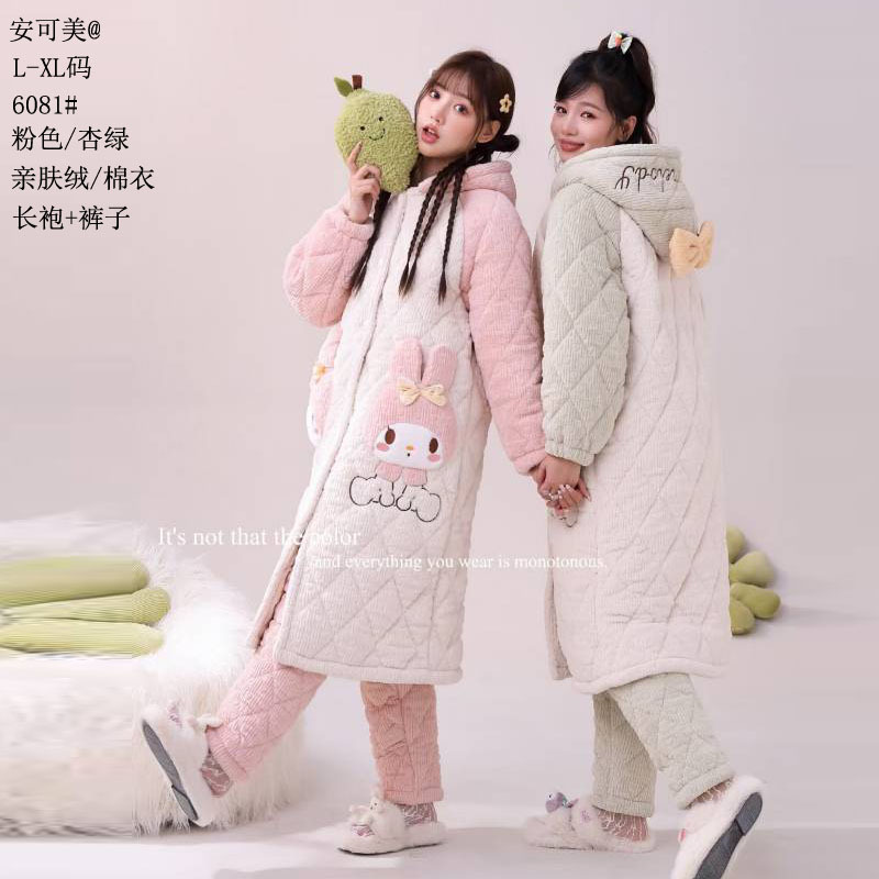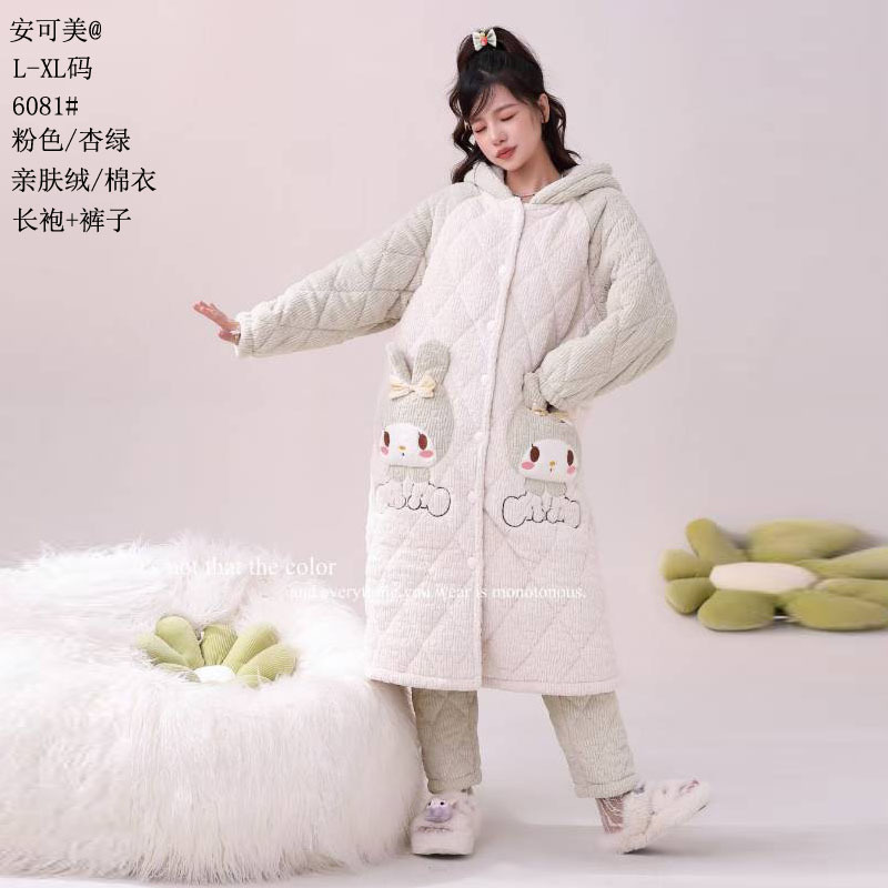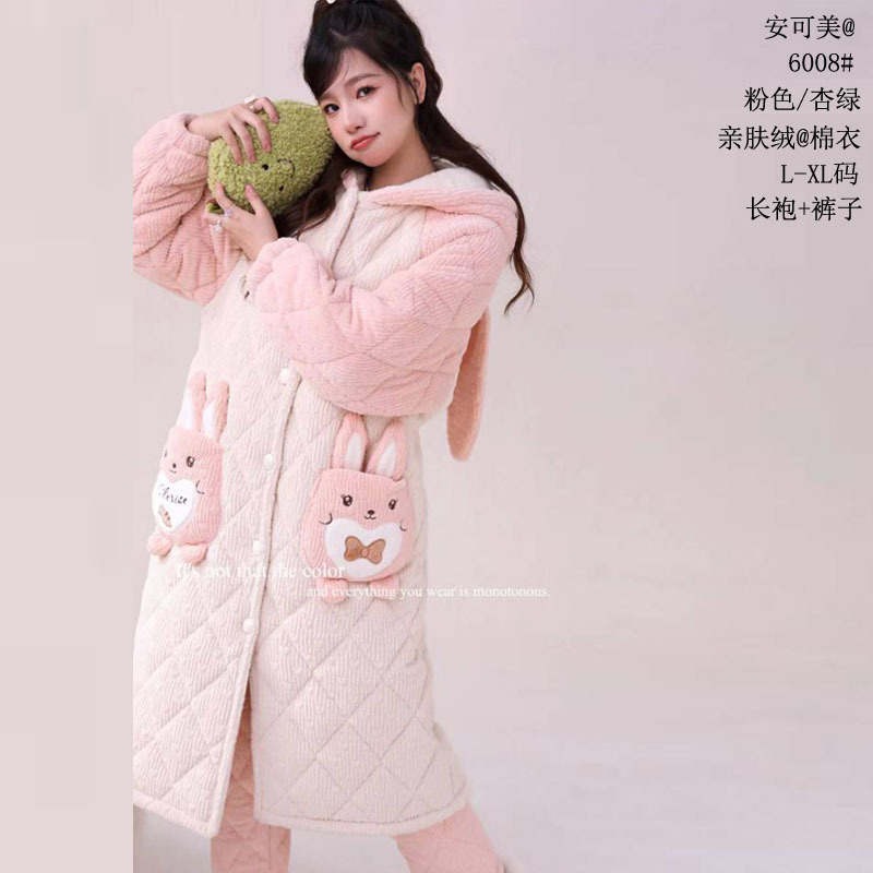 Anke Mei 피부 친화적 인 양털 면 재킷 자카드 잠옷 바지 잠옷 소녀 23 새로운 스타일 긴 가운 여성의 따뜻한 가정복