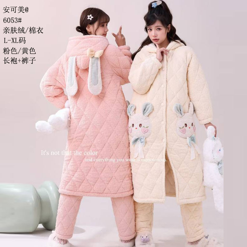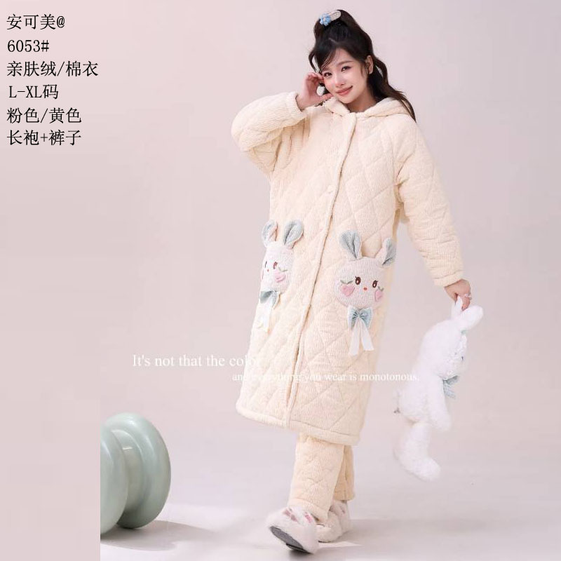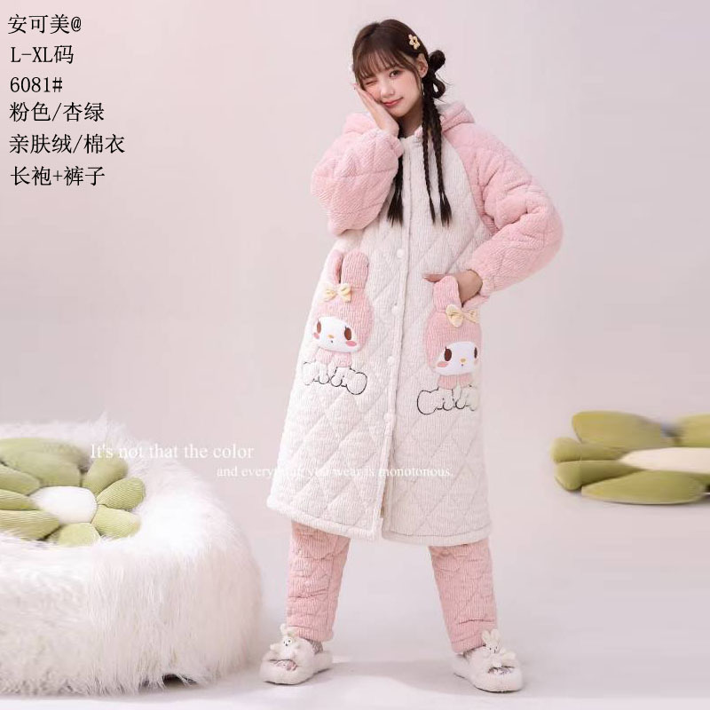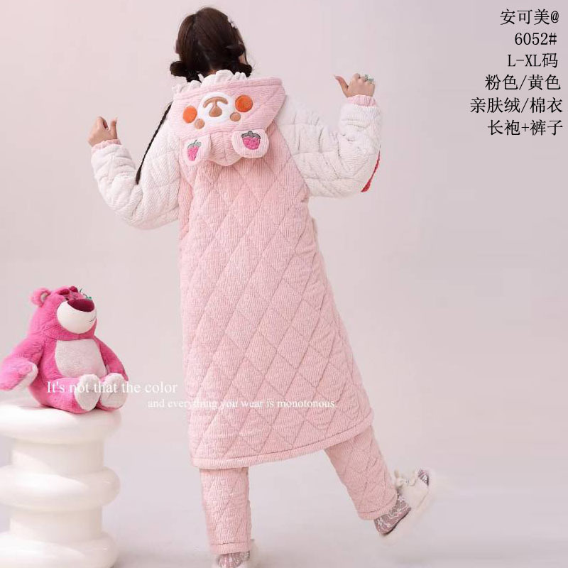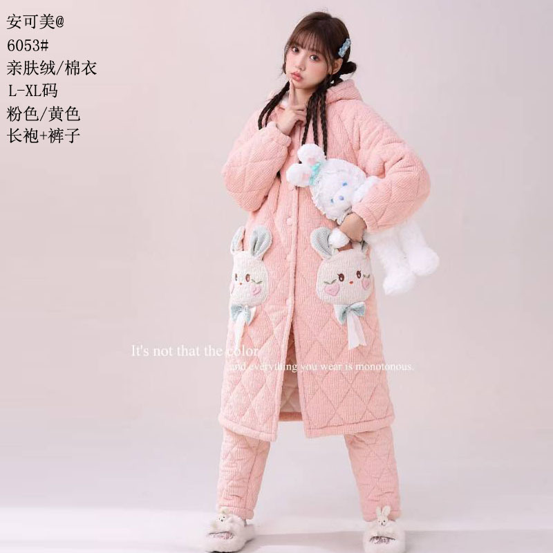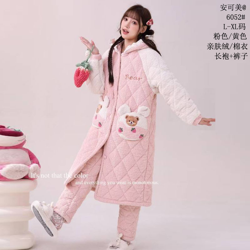 Anke Mei 피부 친화적 인 양털 면 재킷 자카드 잠옷 바지 잠옷 소녀 23 새로운 스타일 긴 가운 여성의 따뜻한 가정복