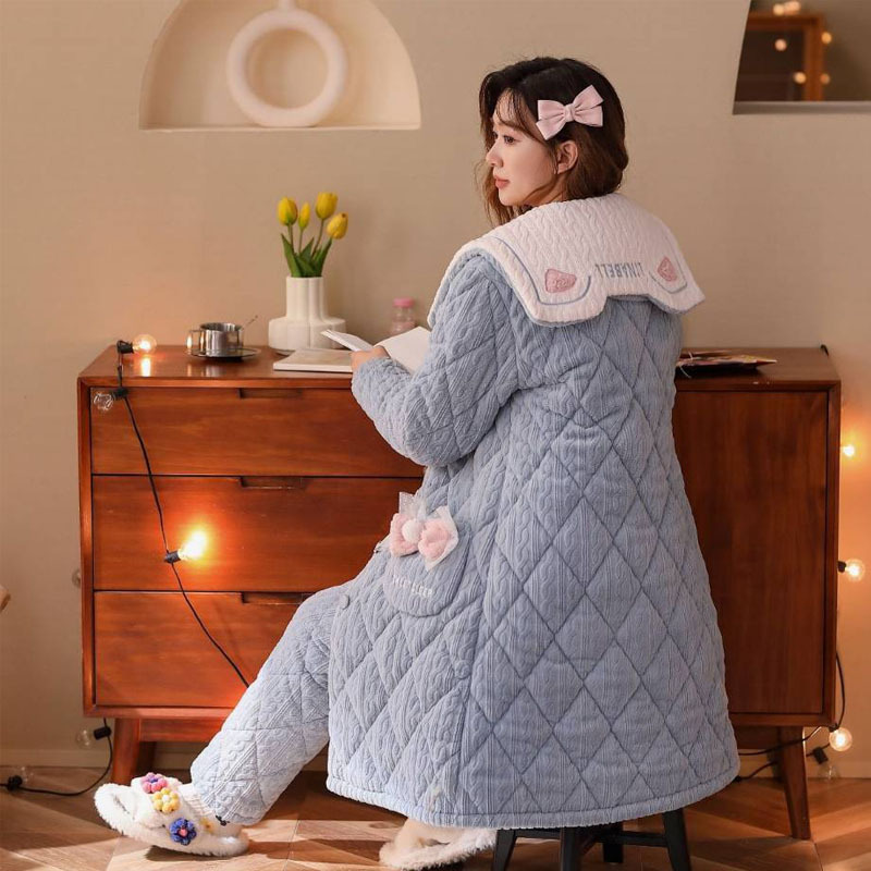 Anke Mei 피부 친화적 인 양털 면 재킷 자카드 잠옷 바지 잠옷 소녀 23 새로운 스타일 긴 가운 여성의 따뜻한 가정복스토어 가기