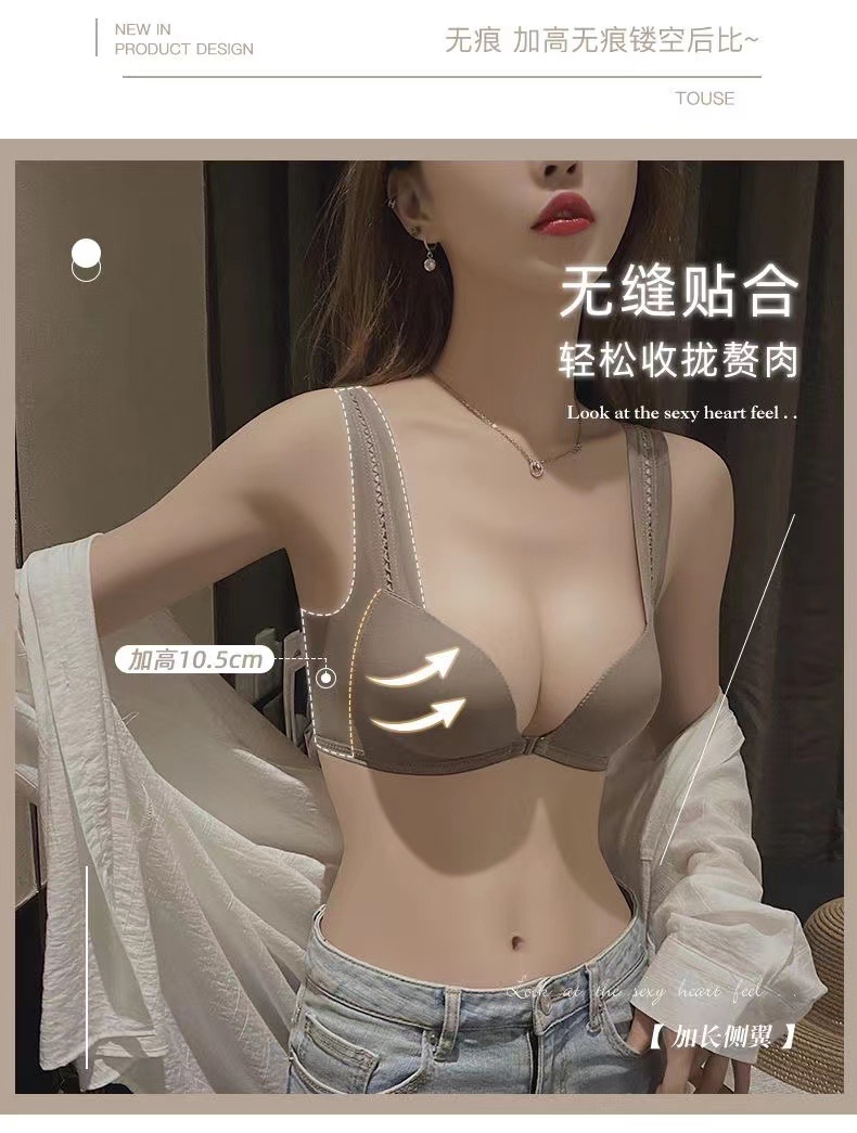 흔적이없는 조끼 스타일 앞 버클 작은 가슴 큰 상단 브레이싱 슈퍼 개더 업 속옷 여성용 파라마 비 림 처짐 방지 브래지어 표시스토어 가기