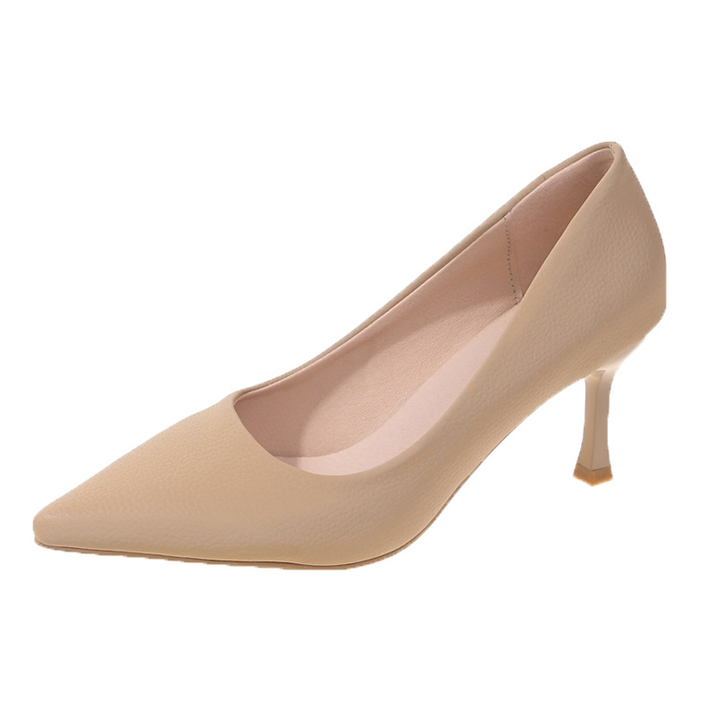 하이힐 여성 2024 봄 신작 심플 패션 한국 스타일 패셔너블 포인팅 발가락 슈틸레토 여성용 트렌디 한 싱글 레이어 슈즈스토어 가기